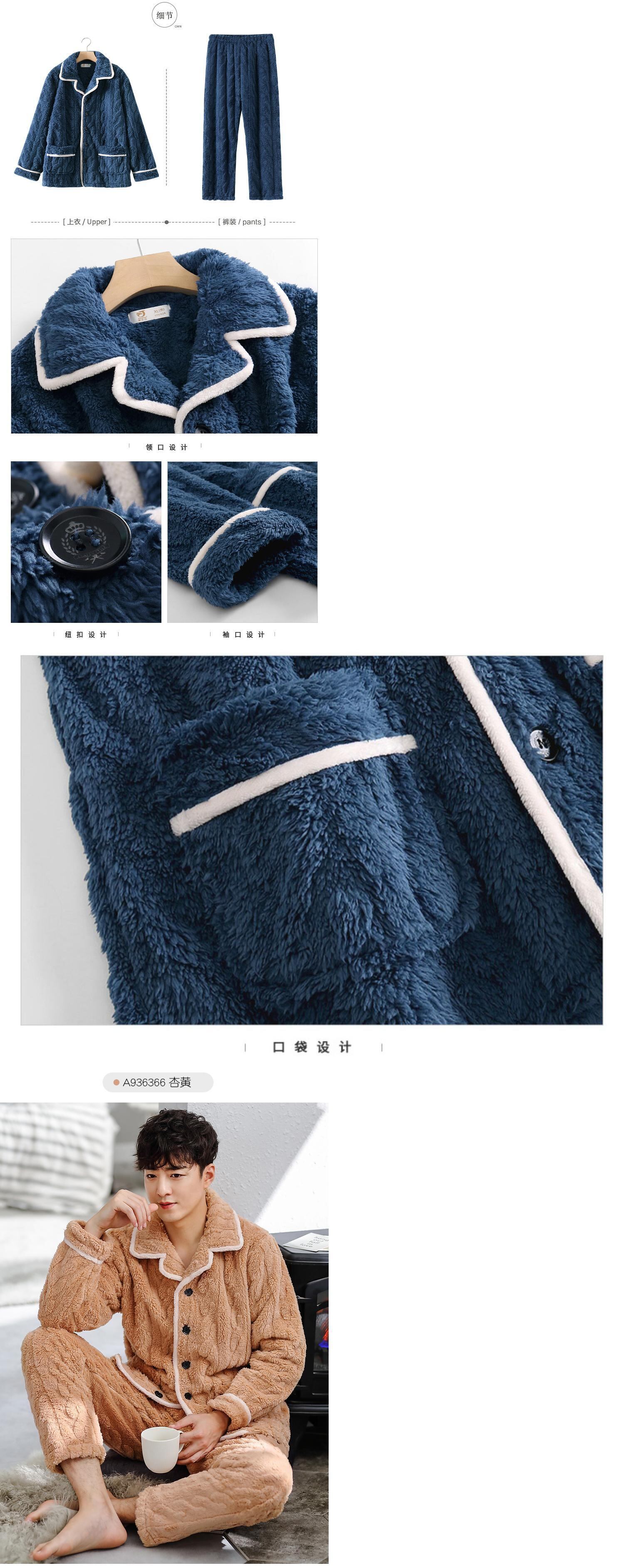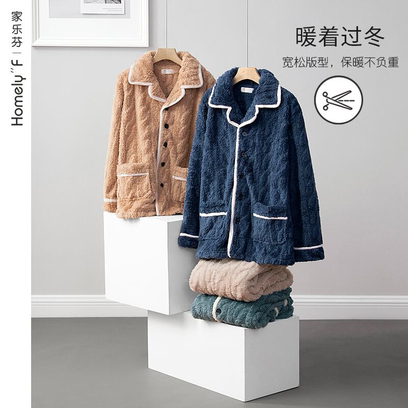 カルフールパジャマメンズ秋冬モデル冬サンゴフリース増粘プラスベルベットウォームフランネルホームサービスメンズ冬 jial53067610358