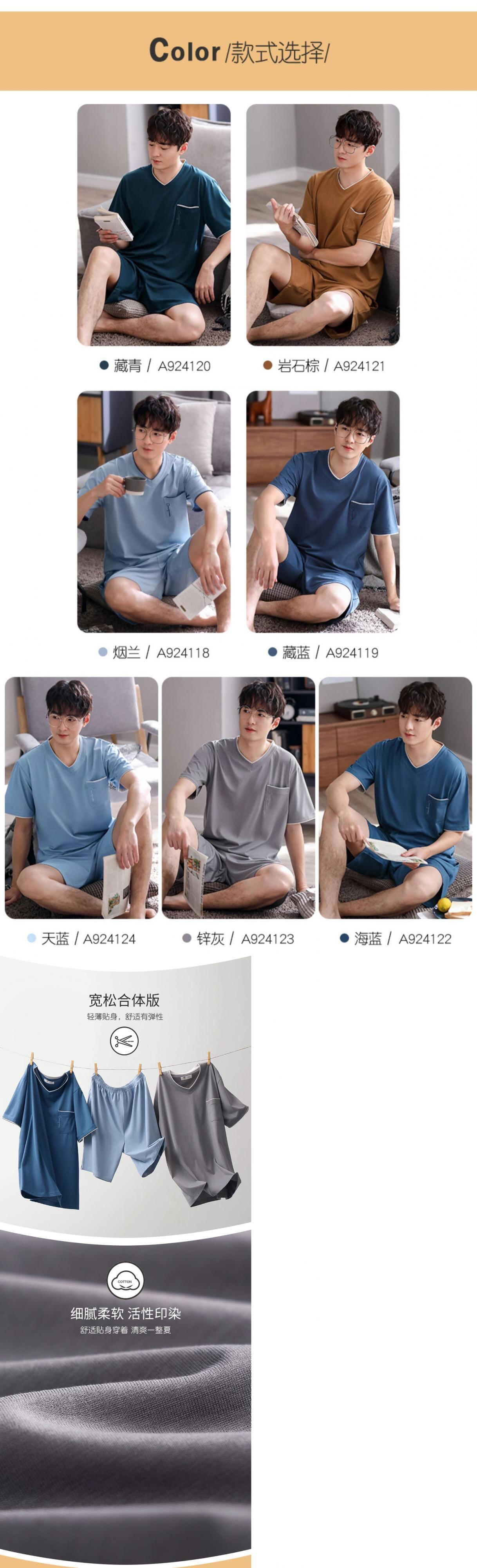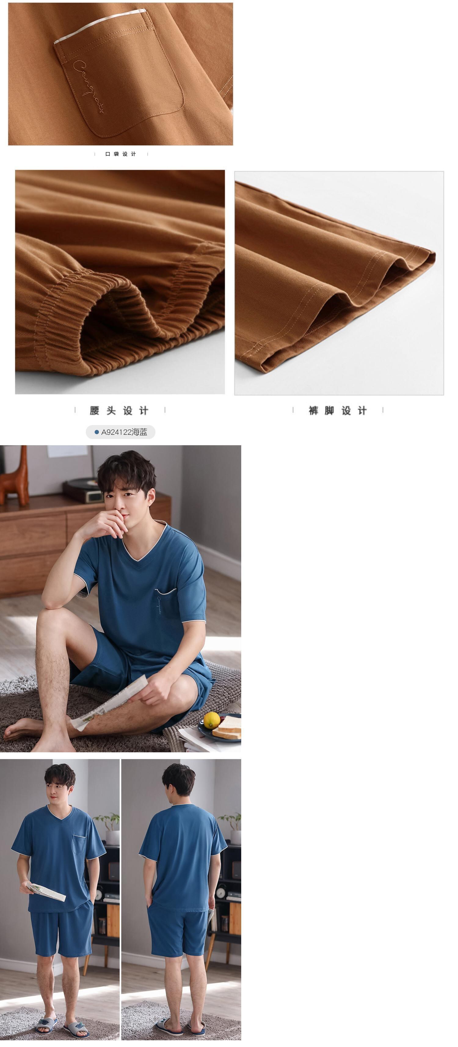 【ライクラコットン】2021年新作パジャマメンズサマーコットン半袖ショーツホームサービスメンズサマーシン jial18122854817
