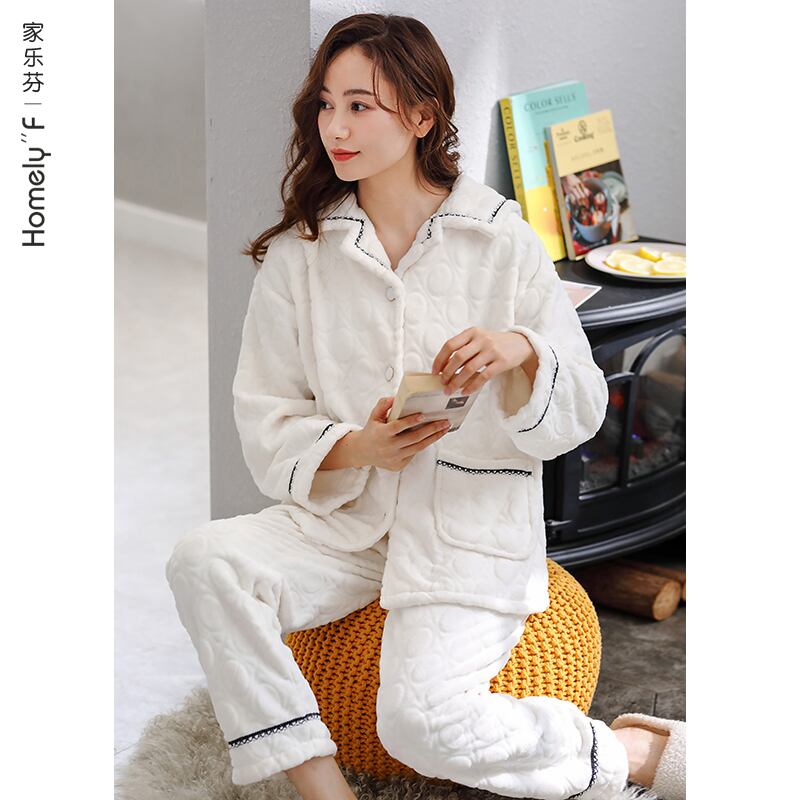 パジャマレディース秋冬モデルコーラルベルベット増粘プラスベルベット暖かさフランネルホームサービス冬ホワイトスーツ jial81332991911
