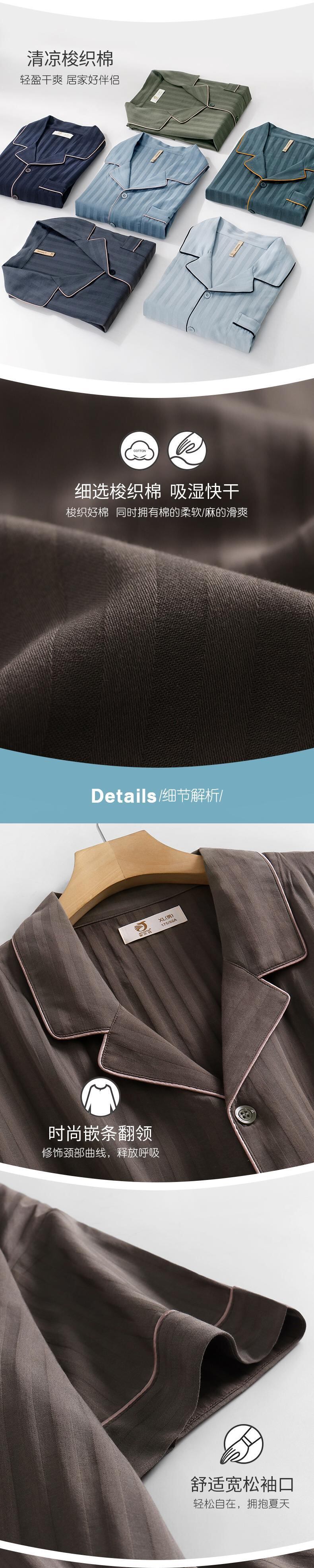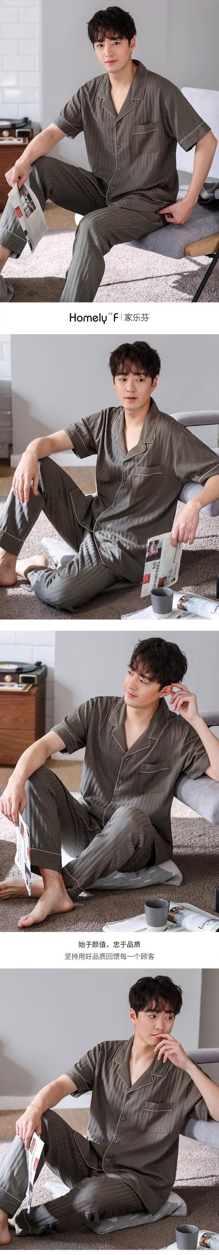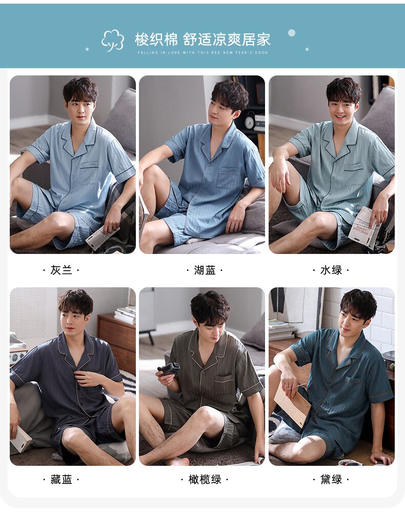 綿ガーゼパジャマメンズサマーコットン半袖パンツホームサービスメンズサマー薄手コットンスーツ jial6798809260