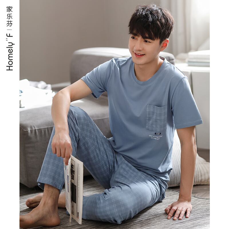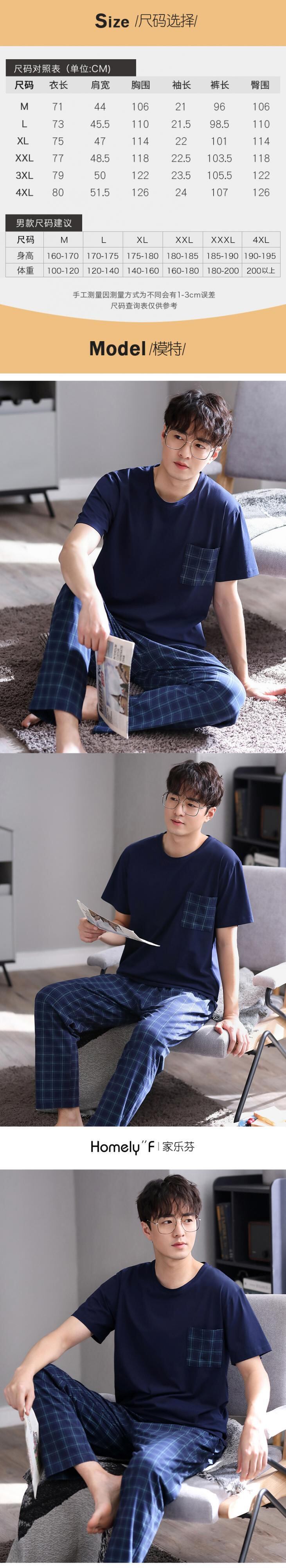 パジャマメンズサマーコットン半袖パンツホームサービスメンズサマー薄手のコットンヘッジ特大スーツ jial98357009350