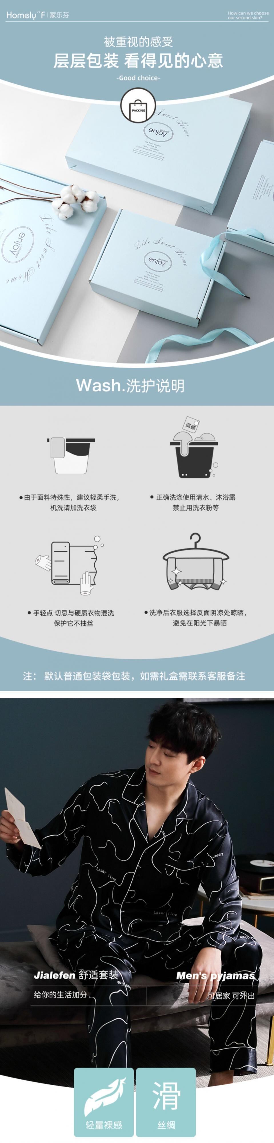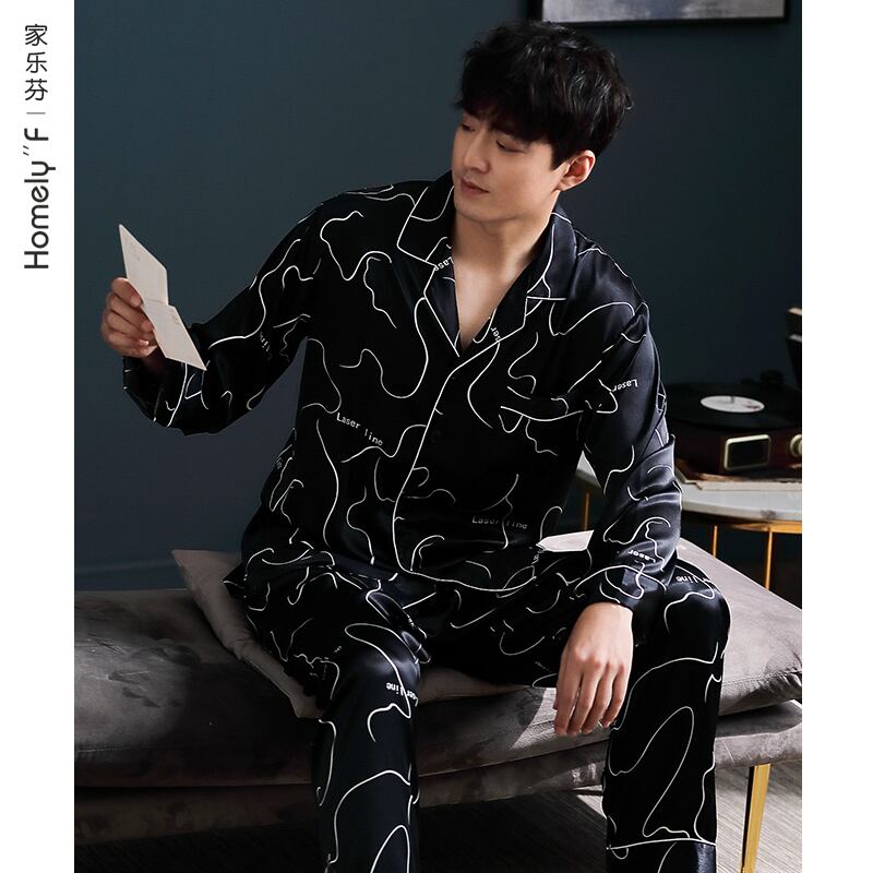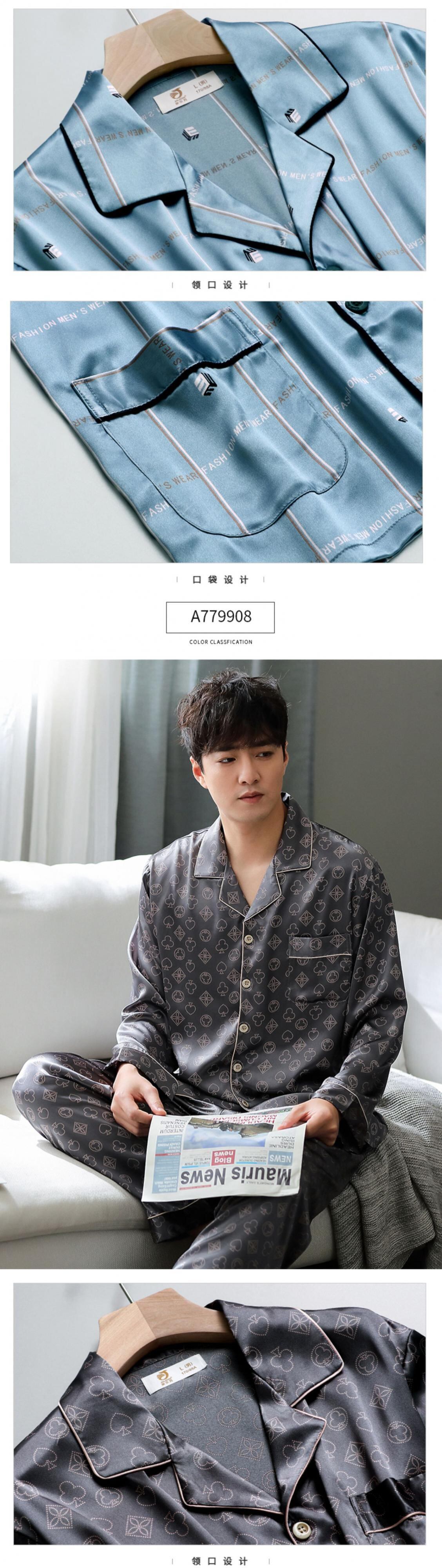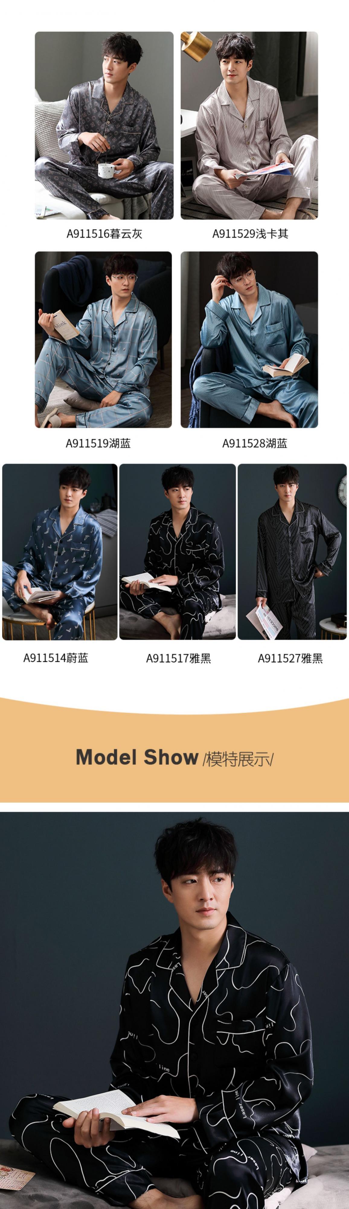 パジャマメンズ春夏夏シルクアイスシルク長袖メンズホームサービス春秋薄切片シミュレーションシルクスーツ jial43504556673
