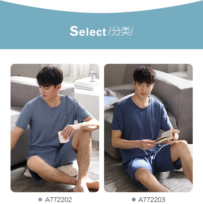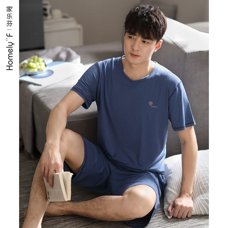 カルフールパジャマメンズサマーモーダル半袖ショーツホームサービスメンズサマーシンアイスシルクプラスサイズ jial14749418341