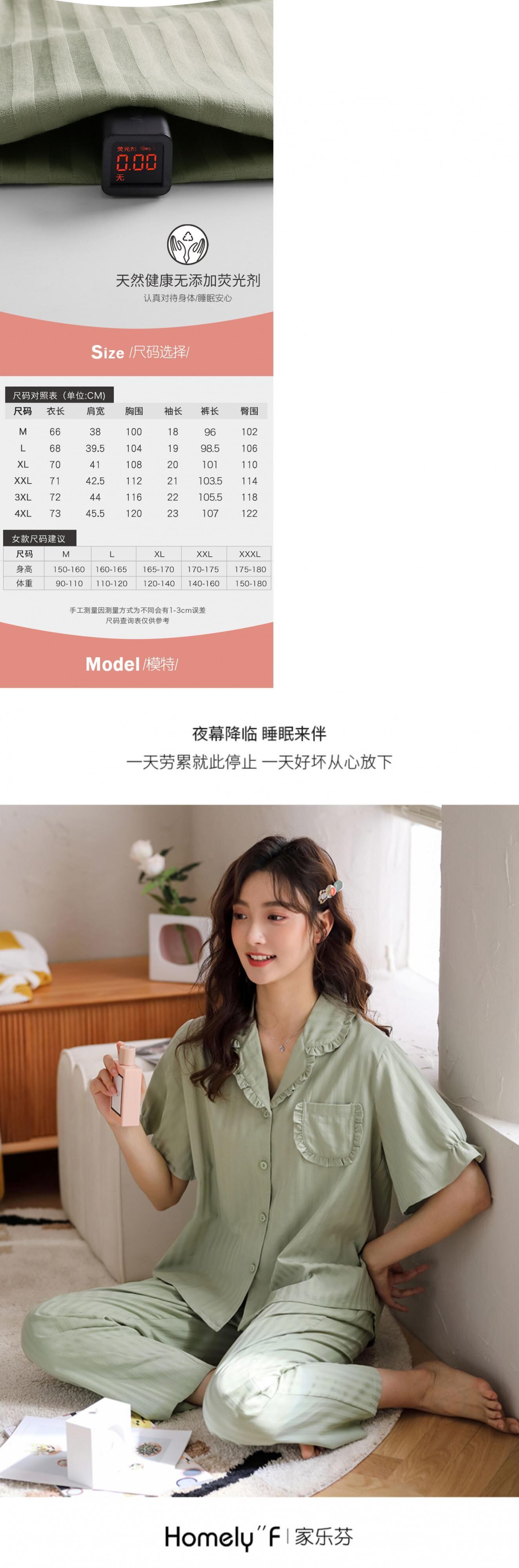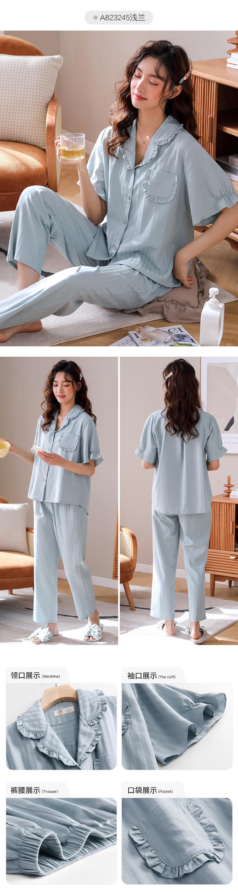 織り綿ガーゼパジャマレディース夏綿半袖ズボンホームサービス夏薄綿大サイズスーツ jial58563465333
