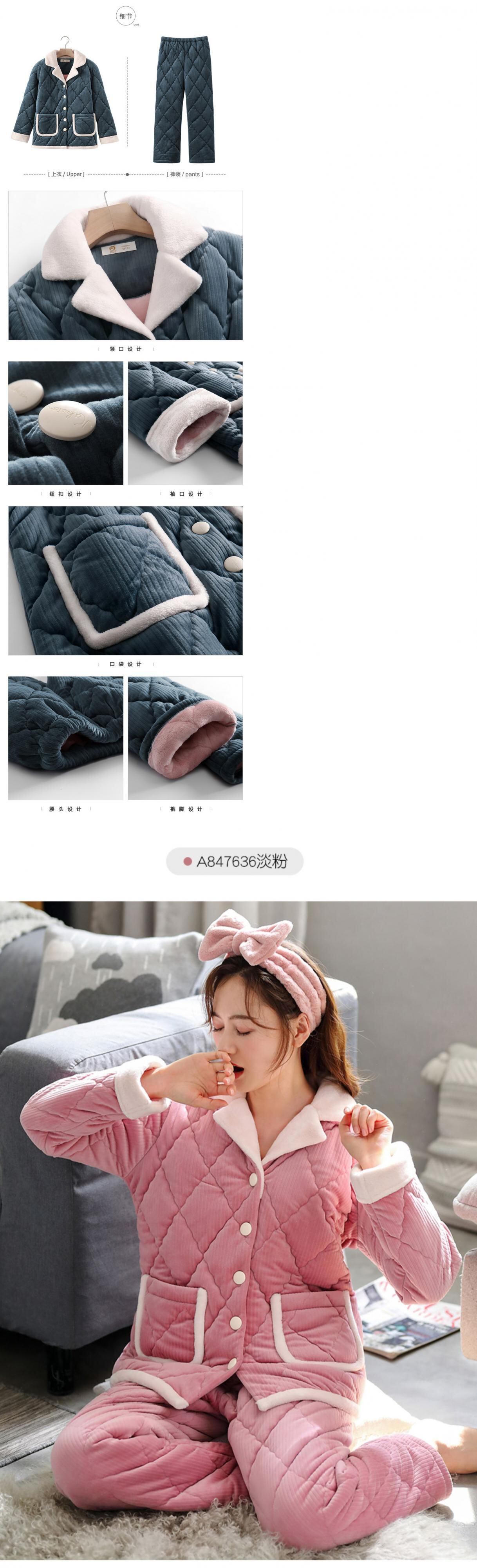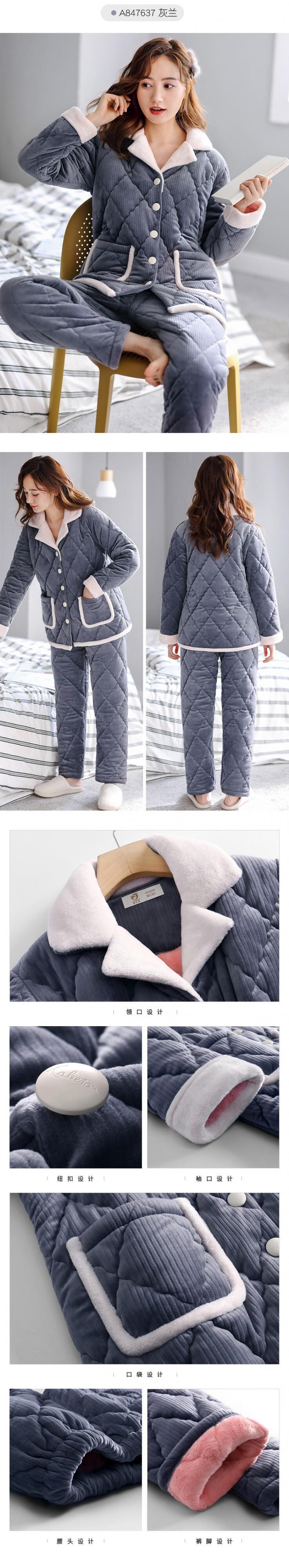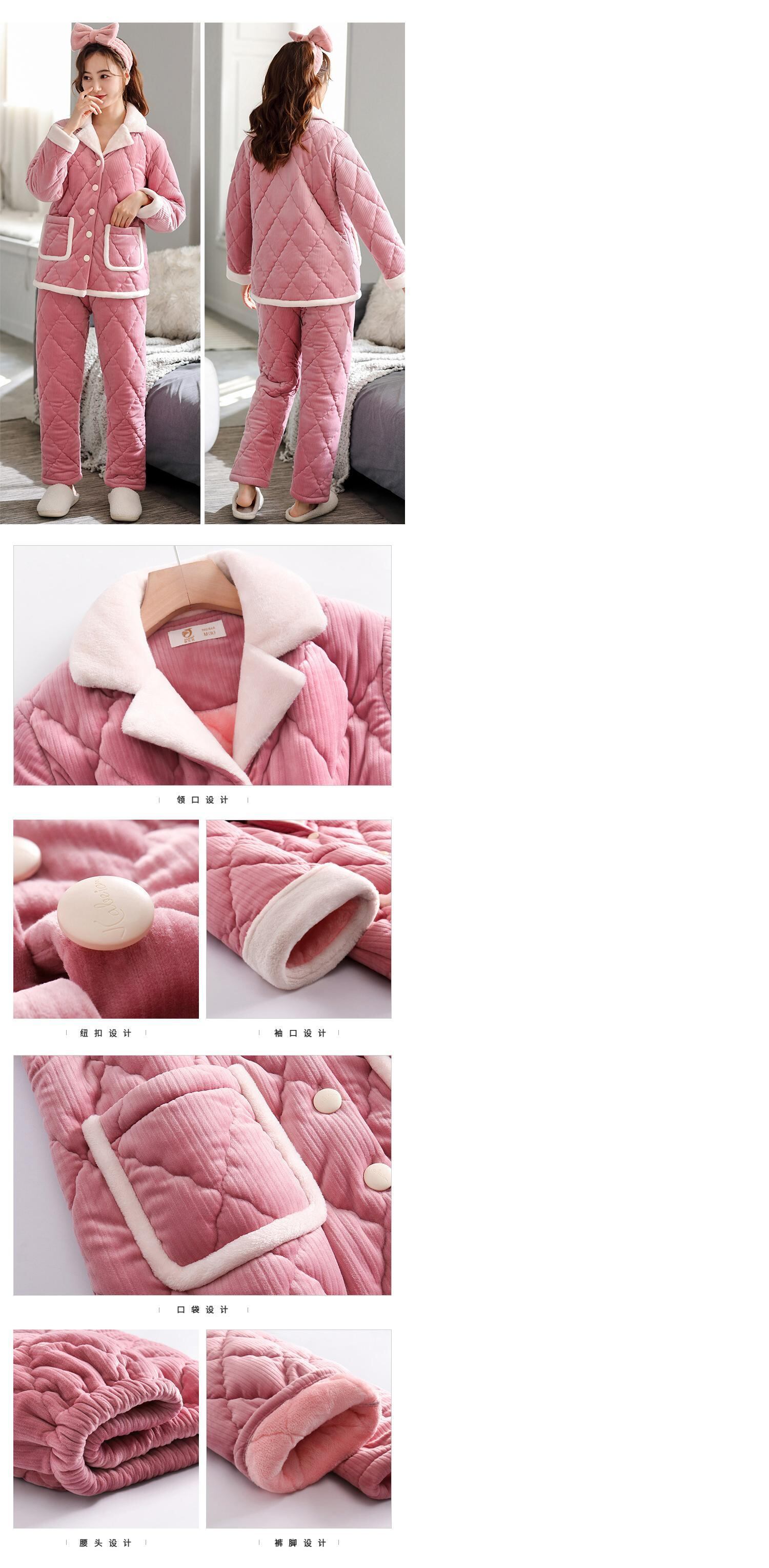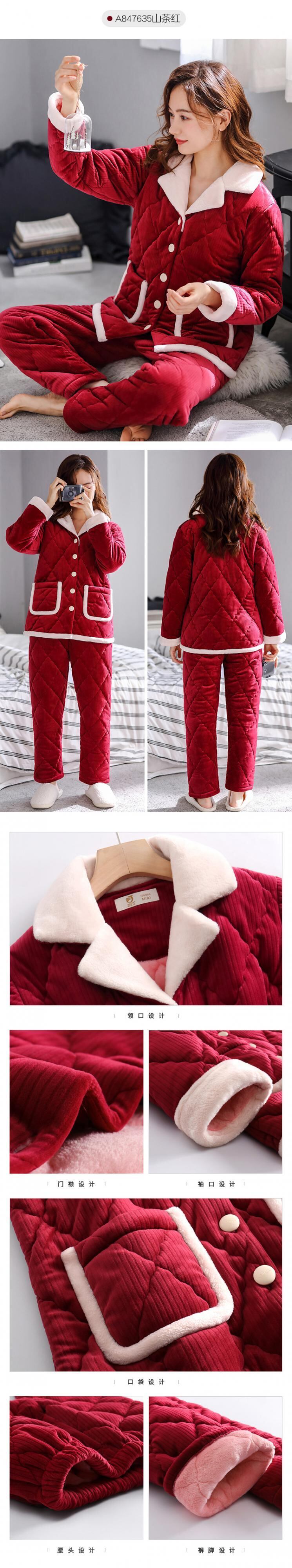 パジャマレディース冬、秋、冬、3層キルティングシックニングとベルベットの暖かさフランネルコーラルベルベットホームサービス jial76513604222