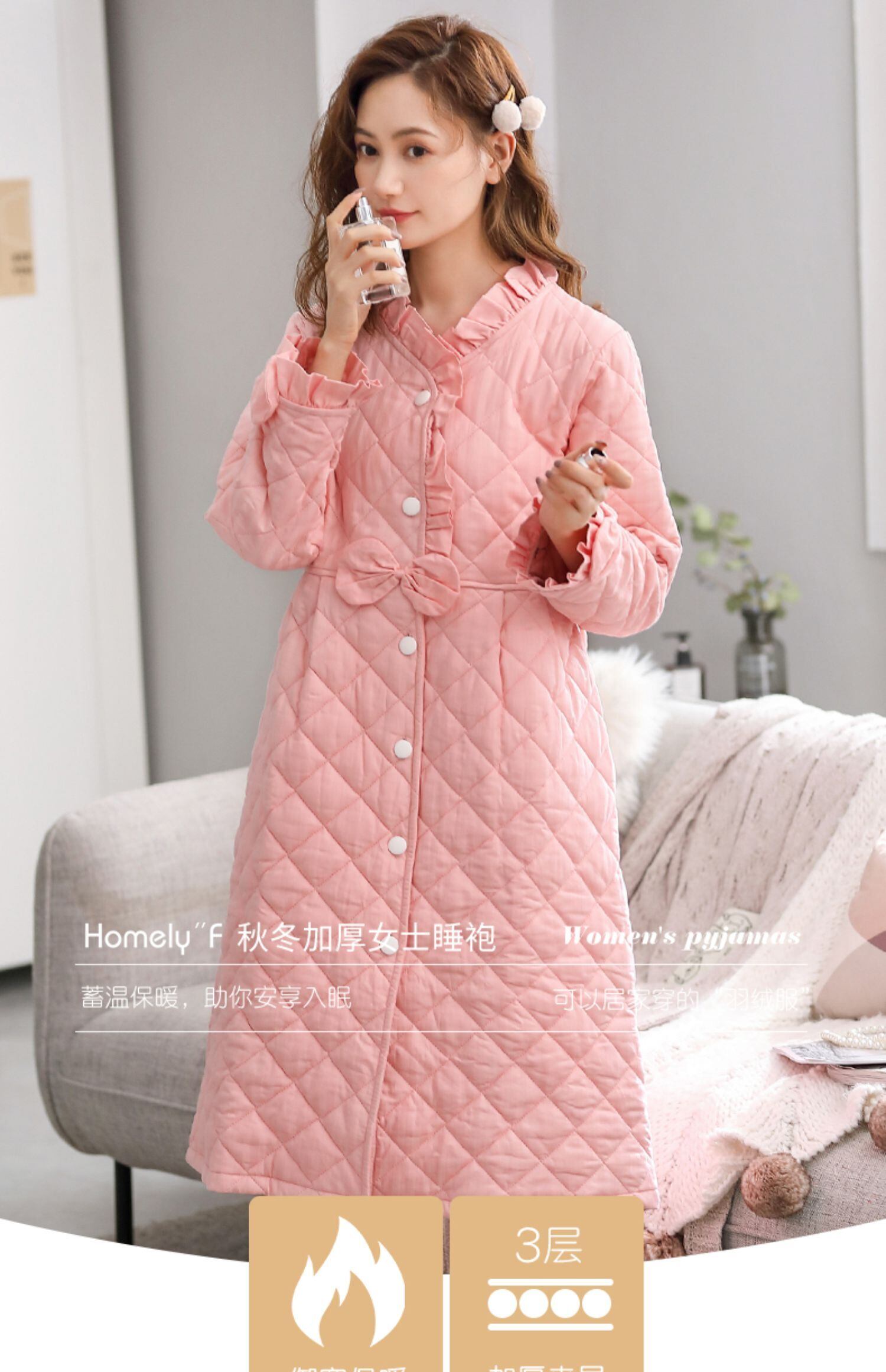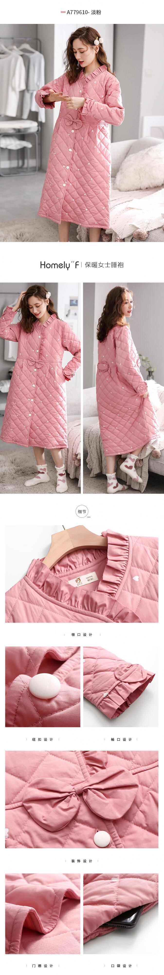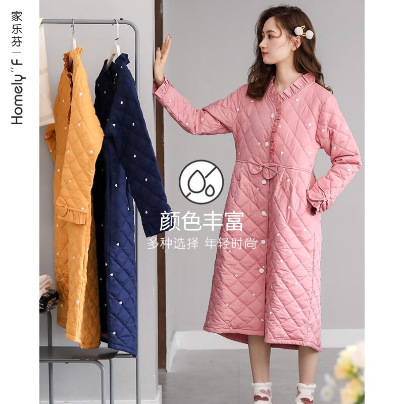 ネグリジェレディースパジャマ秋冬厚手の純綿長袖綿キルティング暖かい長い春と秋のネグリジェかわいい jial31783565022
