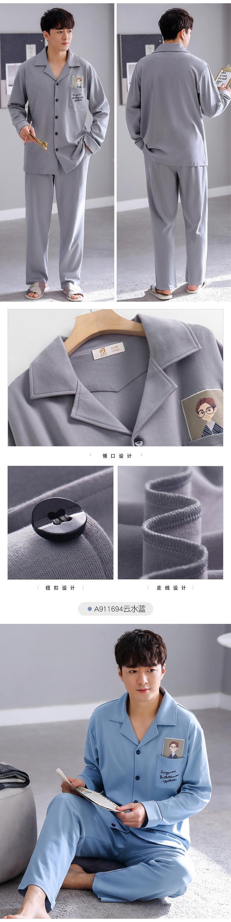 2021年の新しいスタイルのパジャマメンズ春と秋のスタイルと秋の綿長袖ホームウェア綿の春と夏の薄いスタイルのスーツ jial78844514219