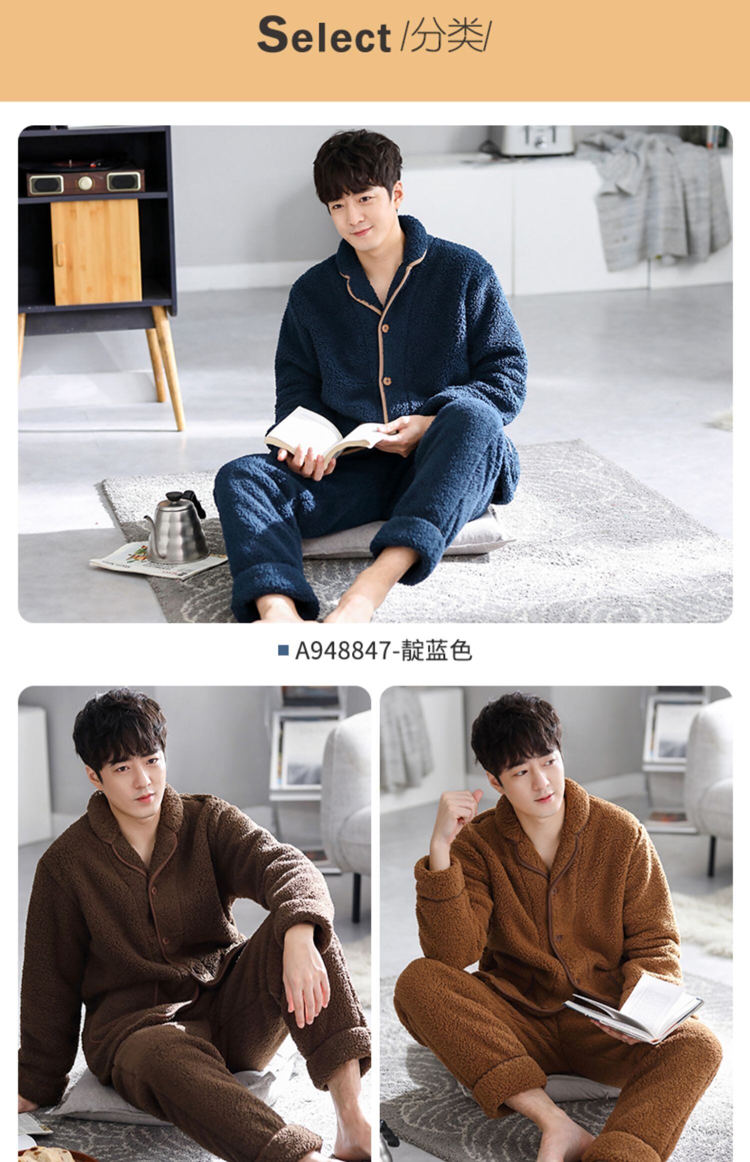 コーラルベルベットの厚みとベルベットの暖かさのフランネルホームサービスメンズウィンタースーツのパジャマメンズ秋冬モデル jial55135608832