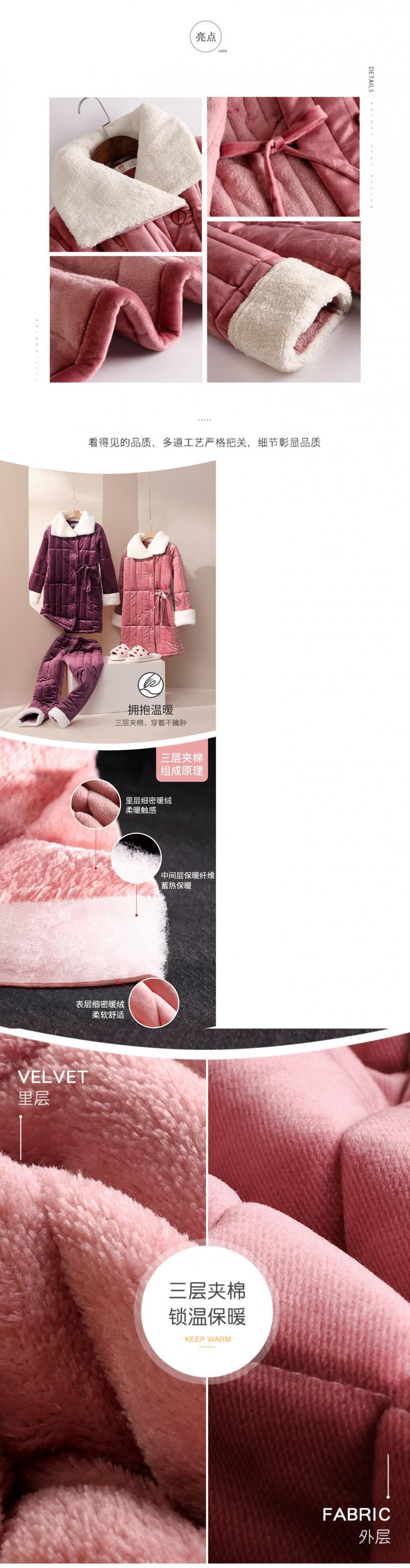 パジャマの女性の冬の3層の厚みとベルベットの綿の秋と冬のコーラルフリースの暖かいフランネルのミドル丈のスーツ jial1555616018