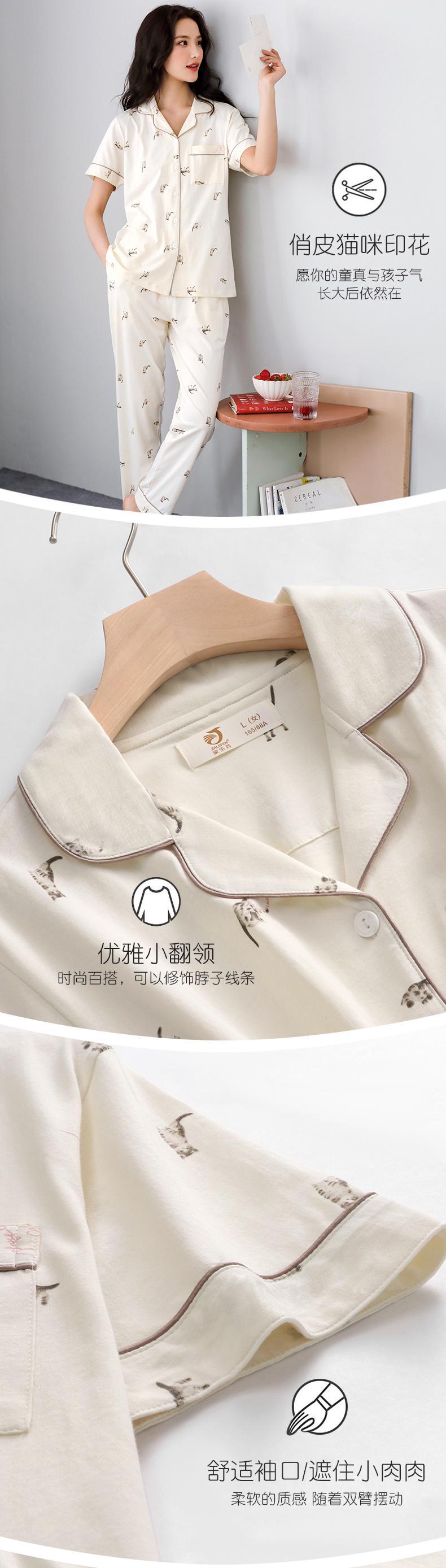 パジャマレディースサマーコットン半袖パンツホームサービスサマーシンコットンカーディガンプラスサイズカジュアルスーツ jial16266865212
