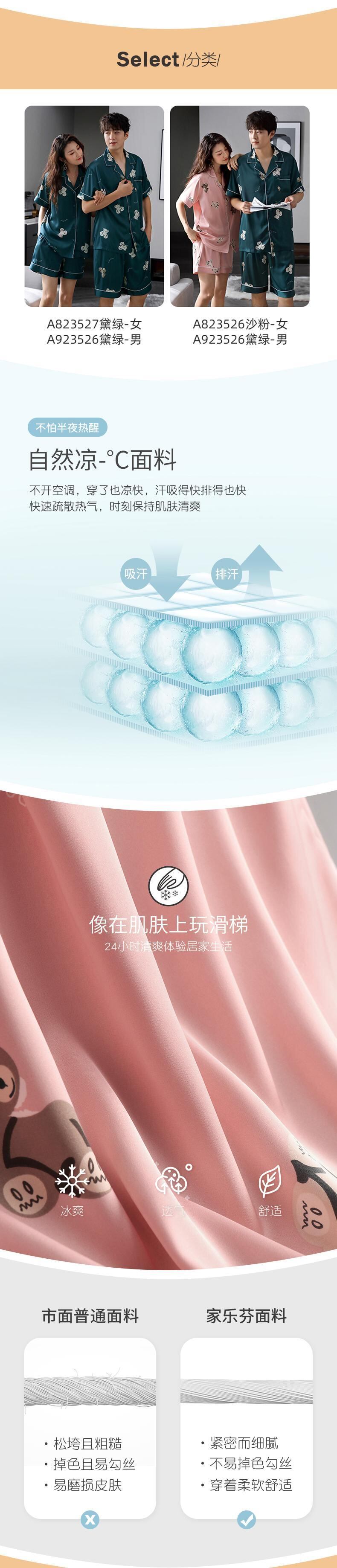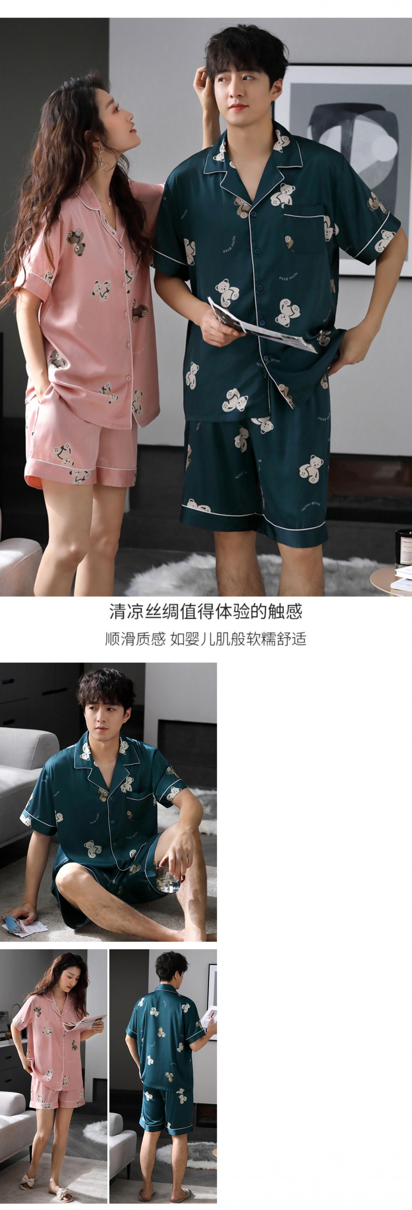カップルパジャマメンズサマーアイスシルク半袖ショーツホームサービスレディースサマー薄片シミュレーションシルクキュートスーツ jial20860843719