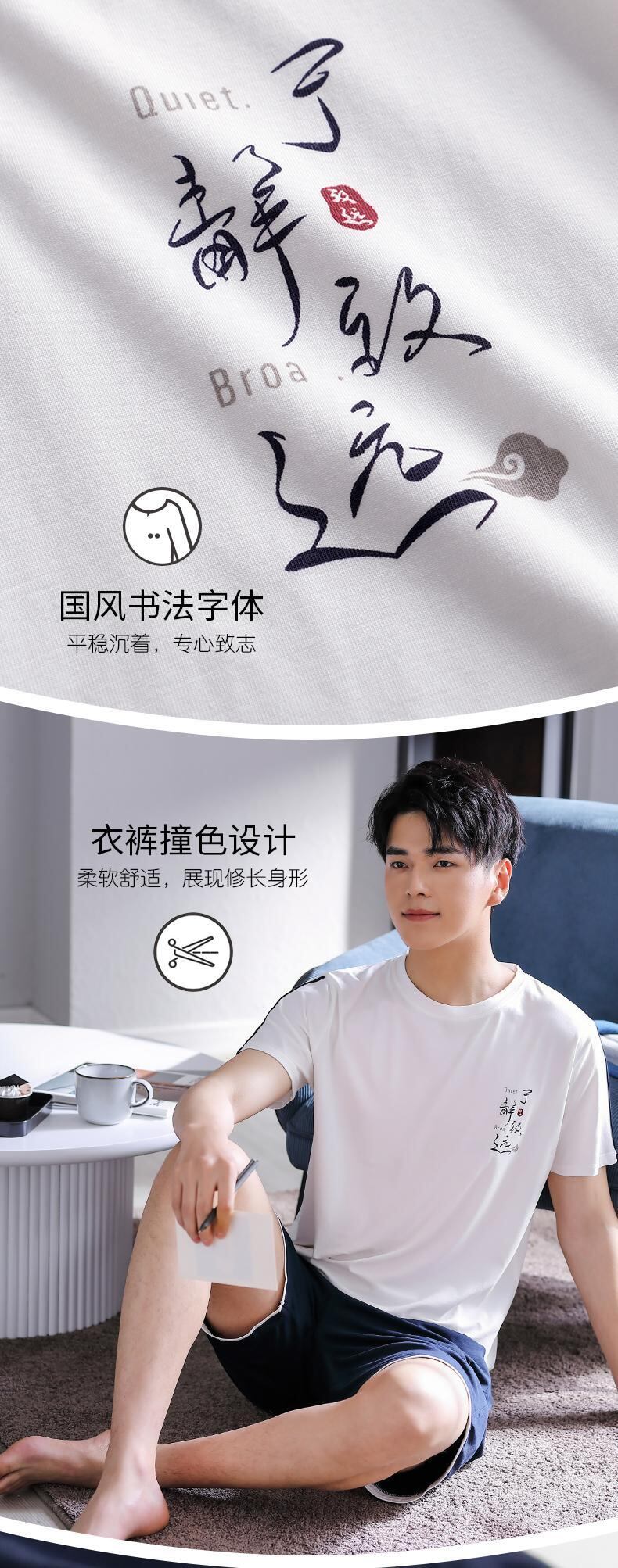 パジャマメンズサマー半袖ショーツモーダルコットンシルクコットンシルクホームサービスサマーシンカジュアルラージサイズスーツ jial80223499521