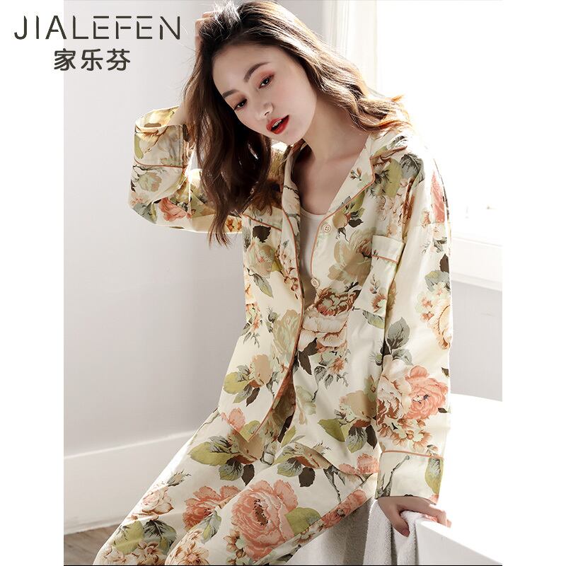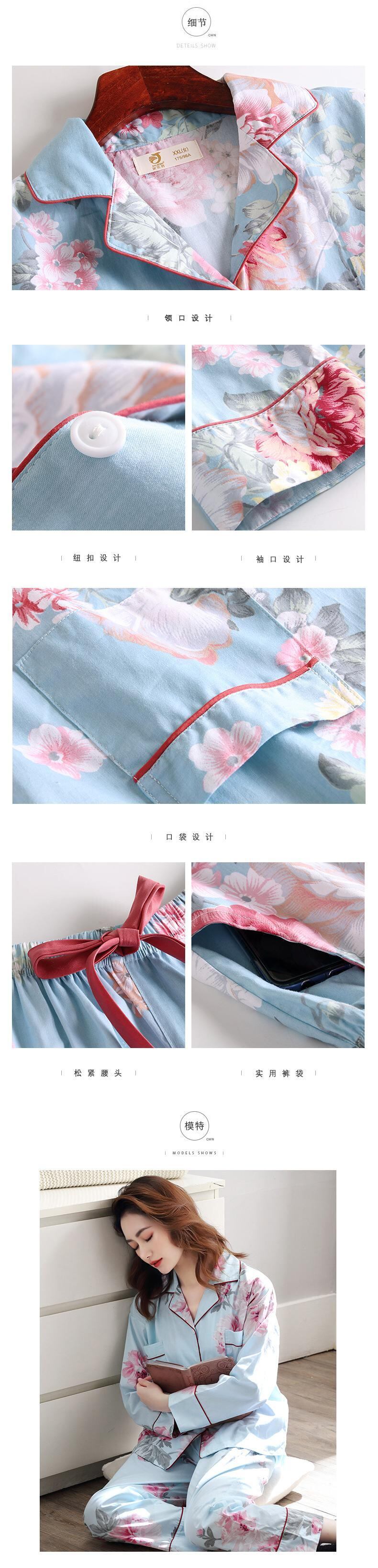 パジャマレディース春春夏織り綿純綿長袖ホームサービス春秋スタイル秋薄花柄スーツ jial91429756819