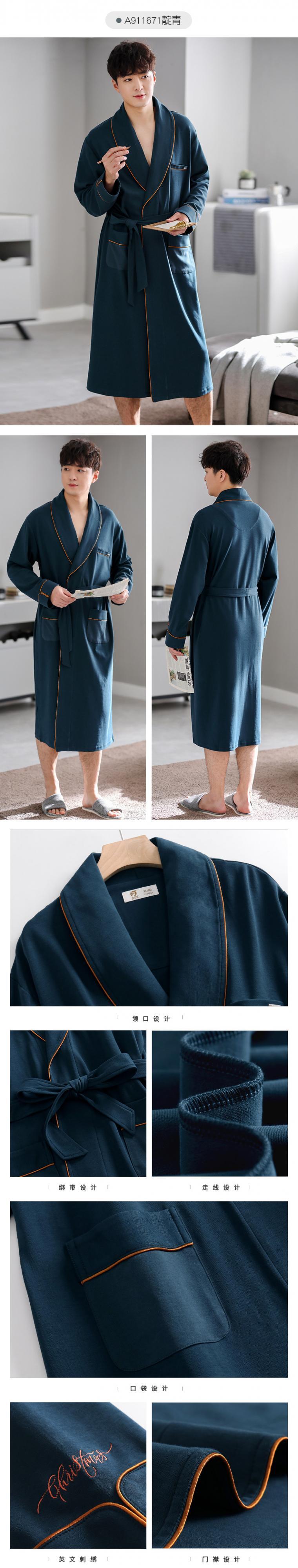 ネグリジェメンズパジャマ、メンズバスローブ、春と秋のモデル、秋の綿の長袖の家庭服、綿の長い、薄い、大きいサイズ jial10418440037