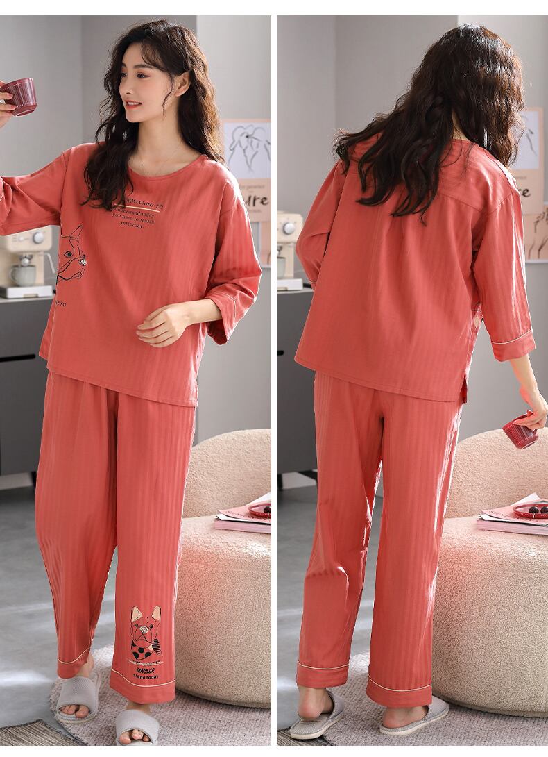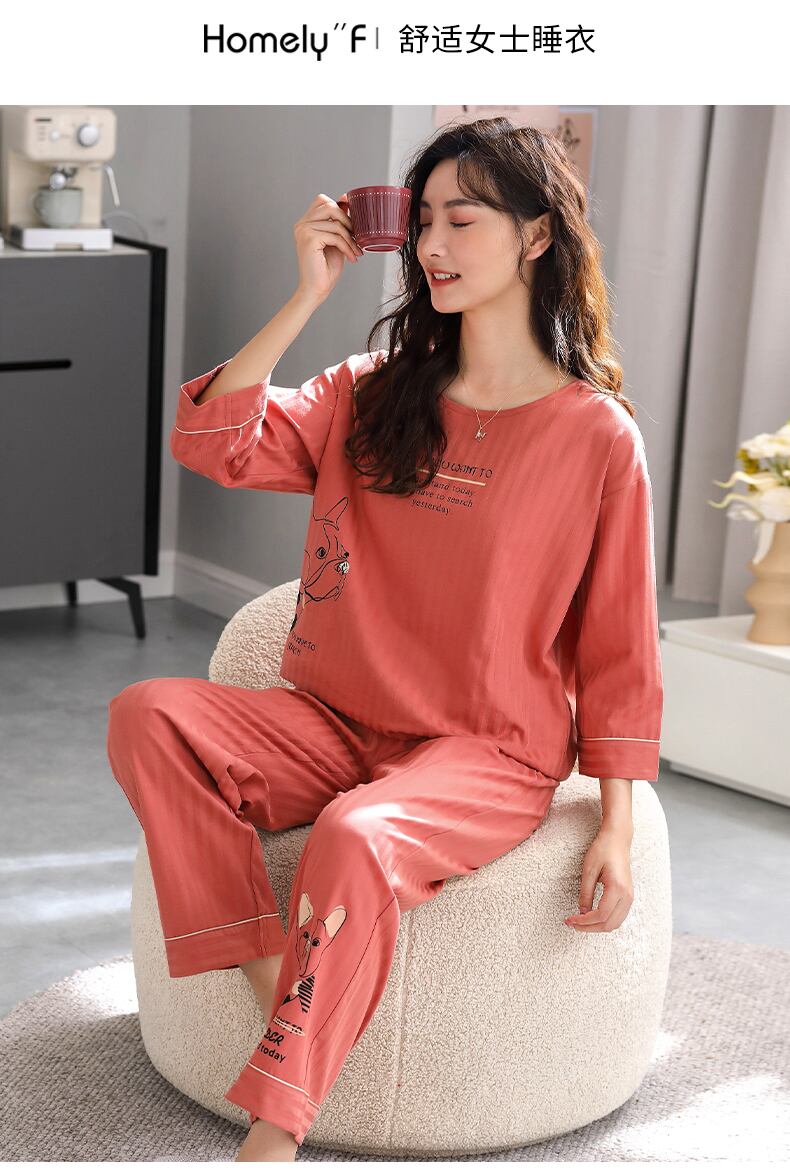 パジャマ女性の春と夏の純綿長袖ホームサービス綿春と秋のスタイルの秋の薄片七分袖大サイズのスーツ jial89789919561