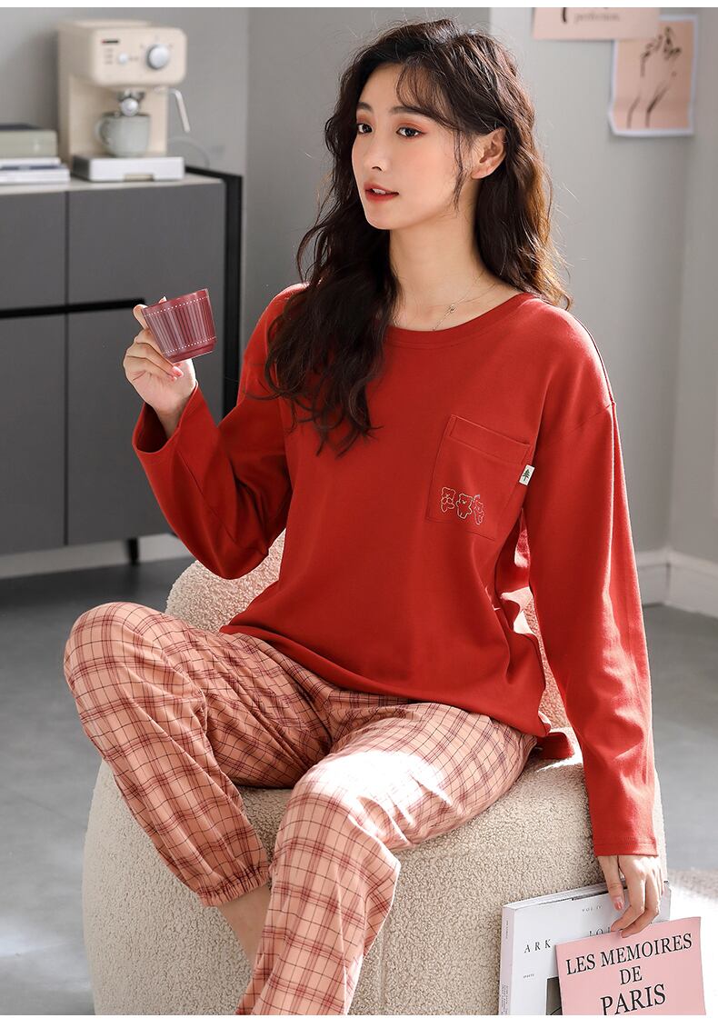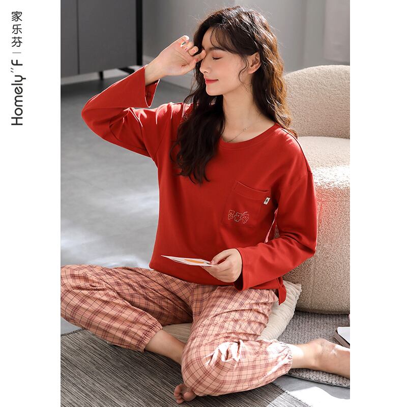 パジャマレディース春秋モデル秋綿長袖家庭服綿100%カジュアルで着て外出プラスサイズスーツ jial33966442419