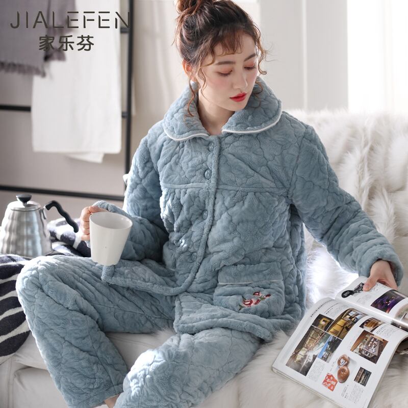パジャマレディースウィンターコーラルベルベット厚手のキルティングジャケット中年マザーウォームフランネル秋冬モデルウィンタープラスベルベット jial17162069261