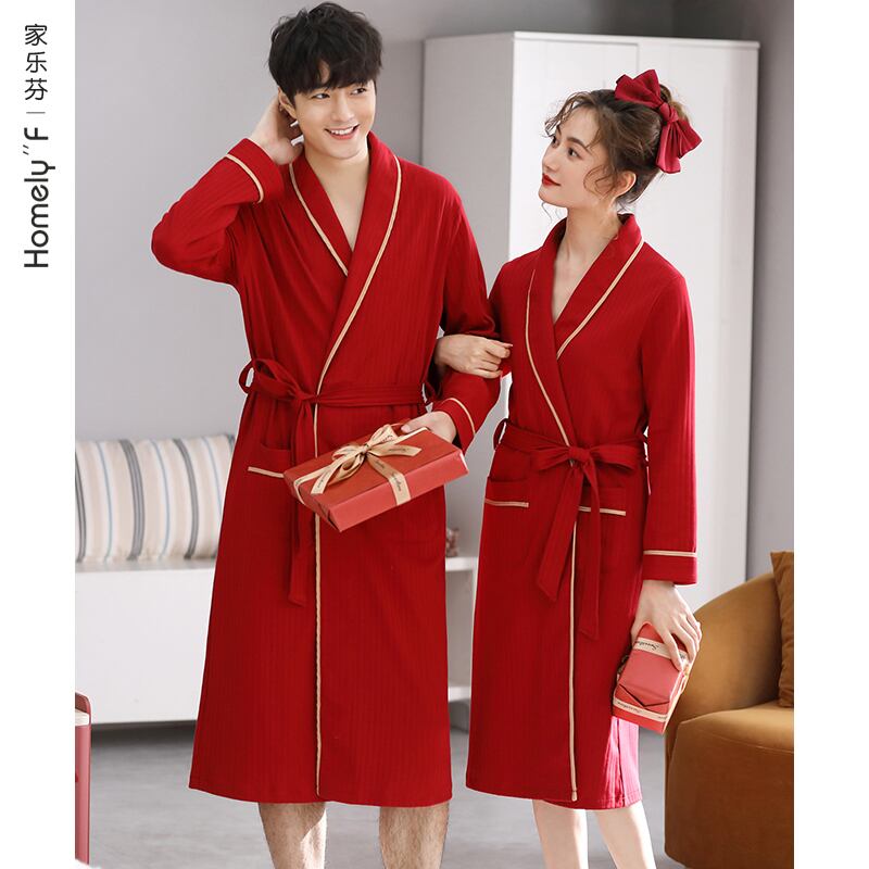 カップルパジャマ女性の春と秋の純綿のセクシーなネグリジェブライダルドレッシングガウンバスローブ男性の大きな赤い新婚の結婚式のスーツ jial28585192145