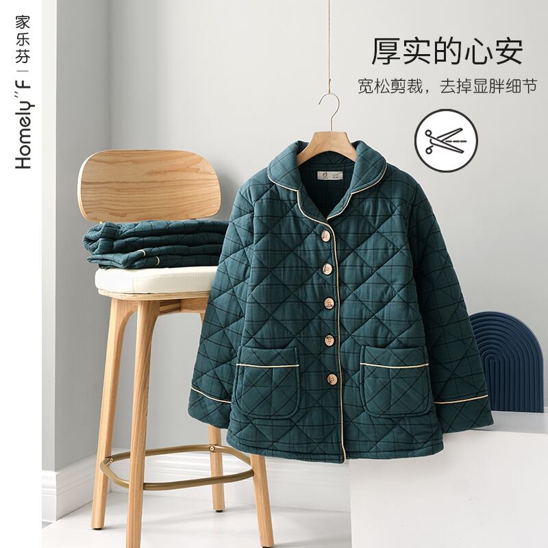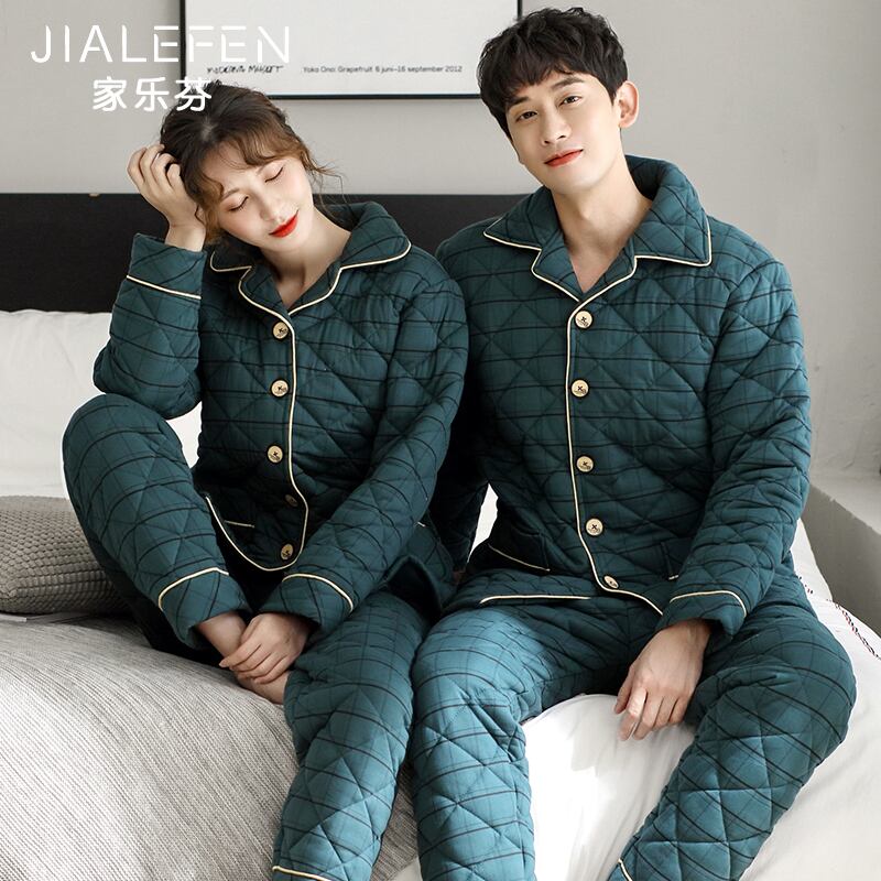 カップルパジャマ女性男性冬3層厚綿プラス綿長袖秋冬モデル冬キルティング綿暖かい jial28341439762