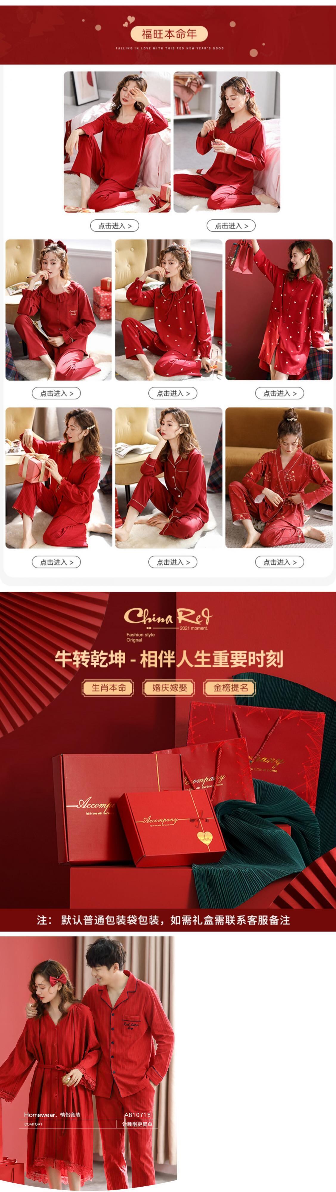 ly結婚した花嫁赤いお祭りパジャマカップルドレッシングガウン長袖純綿セクシーなネグリジェナイトガウン女性のスーツ jial47671281719