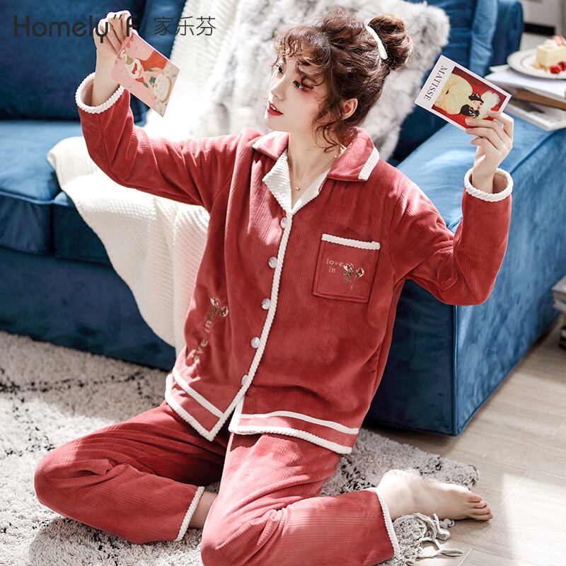複合キルティングパジャマレディース秋と冬のコーラルベルベットの厚みとベルベットの暖かいホームサービスの冬のスーツ jial35405381418