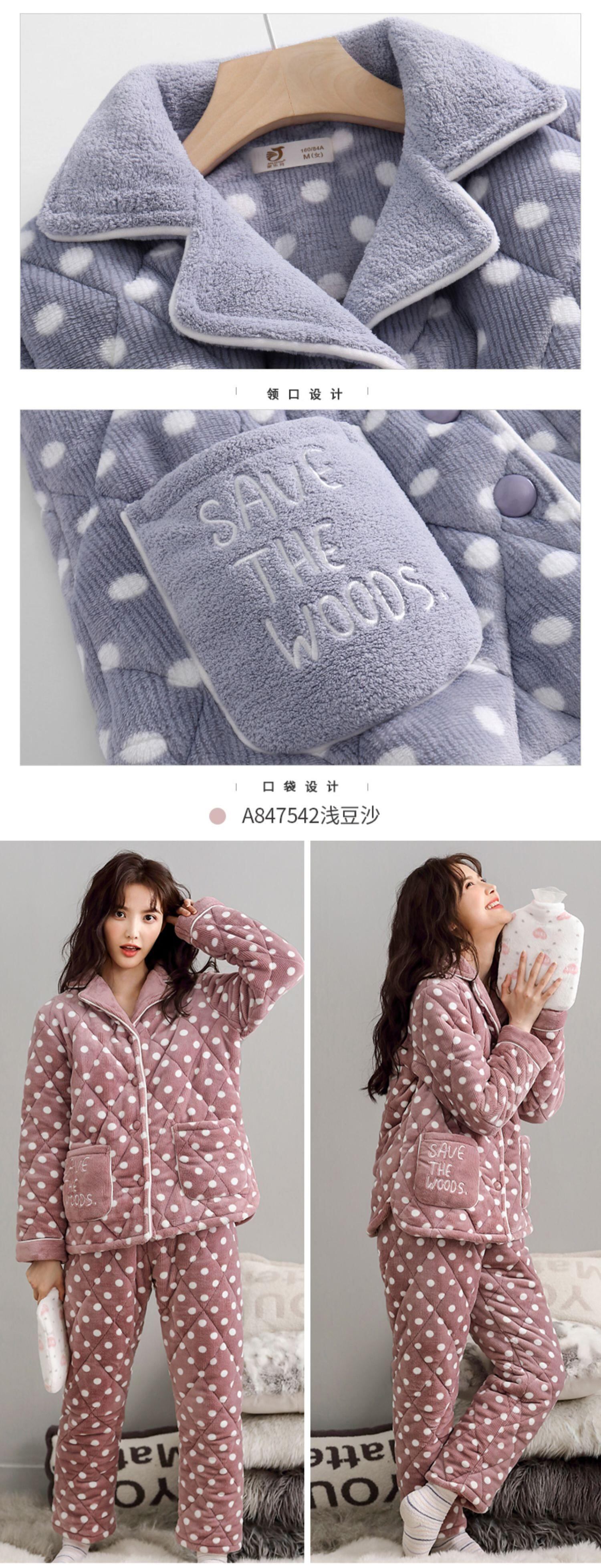 パジャマ女性冬冬コーラルフリースフランネルキルティングジャケット3層増粘プラスベルベット暖かいホームサービス秋と冬 jial34892414137