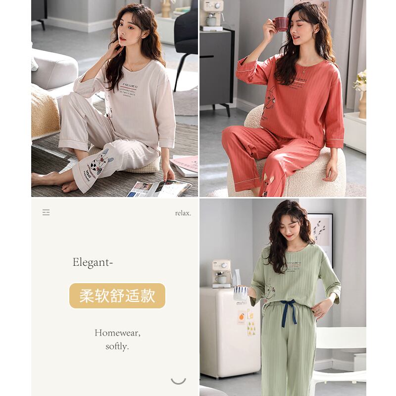 パジャマレディース春夏純綿長袖ホームサービス綿春秋スタイル秋秋薄片七分袖スーツ jial94332485479