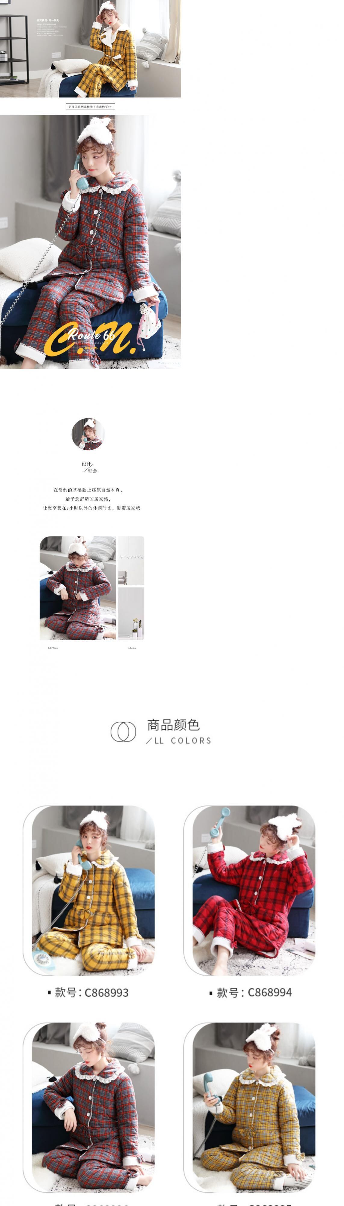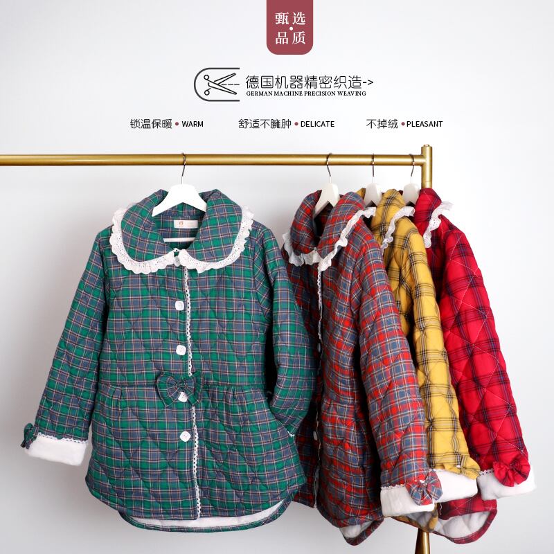 パジャマの女性の秋と冬の3層の厚いキルティングジャケット純綿プラス綿プラスベルベット暖かいコーラルフリースフランネルスーツ jial53783455365