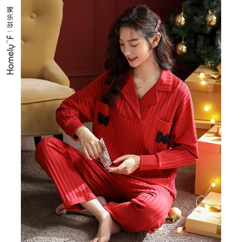 パジャマレディース春冬モデル秋コットン長袖ホームウェアコットン秋冬ビッグレッド出生女性スーツ jial66985106260