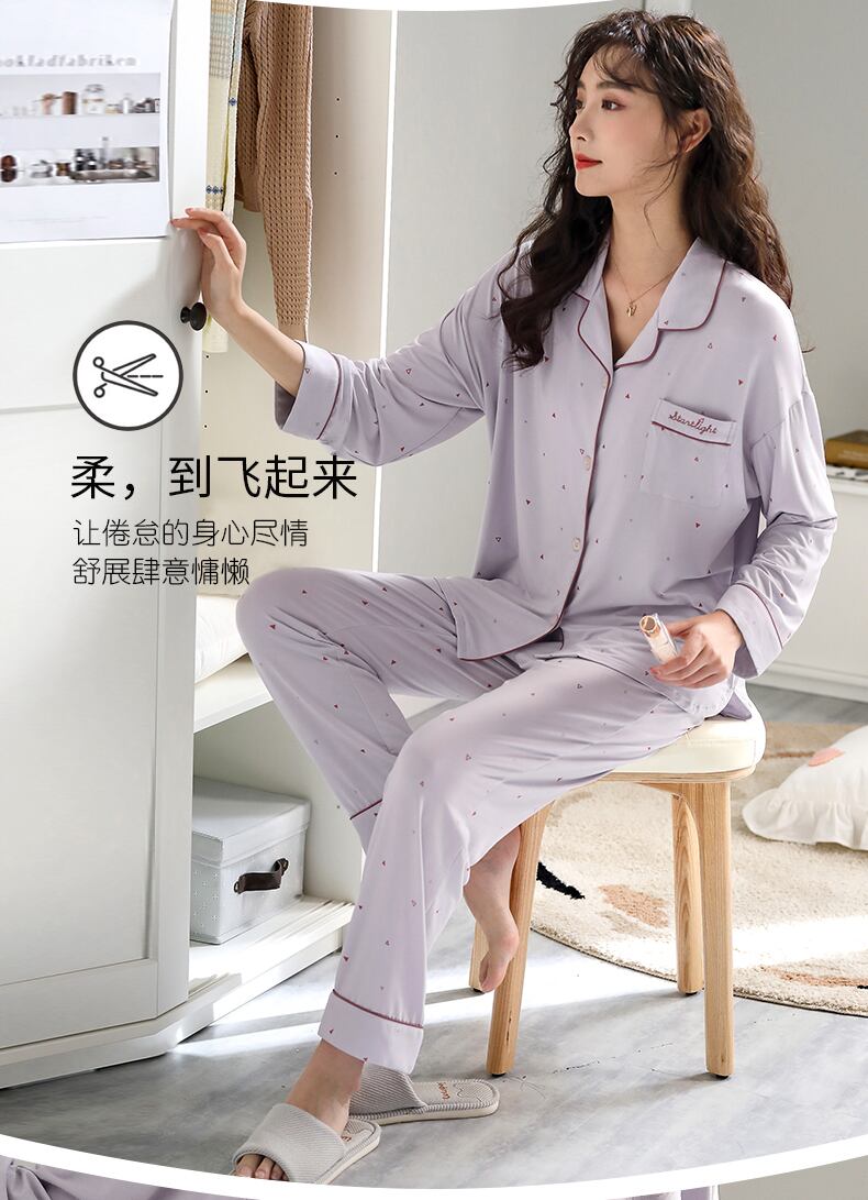 パジャマレディース春夏モーダルコットンシルク長袖ホームサービス春秋秋秋薄氷シルクスーツ jial13721465242