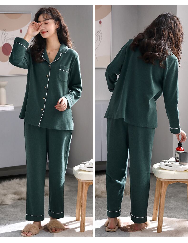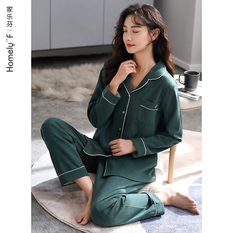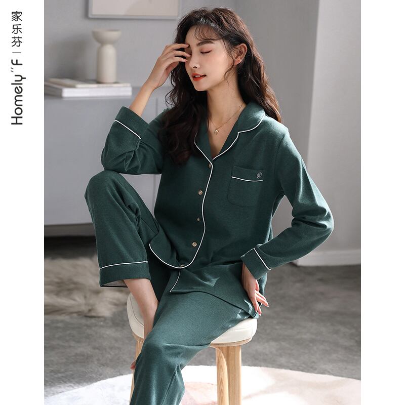 【カラーコットン】パジャマレディース春秋モデル秋コットン長袖ホームサービスコットン秋冬プラスサイズスーツ jial56207413164