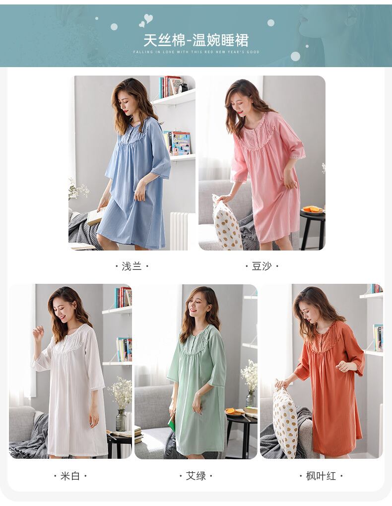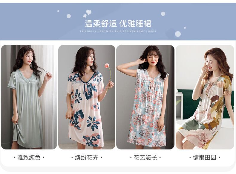 ネグリジェ女性のパジャマ夏と夏の薄いセクションモーダルコットンシルク半袖中年の母親中年と高齢者のルーズプラスサイズ jial54209205710