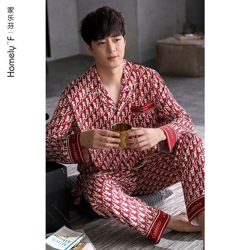 パジャマメンズ春夏シルクアイスシルク長袖ホームサービスメンズ春秋モデル秋薄モデル出生年ビッグレッド jial71082977261