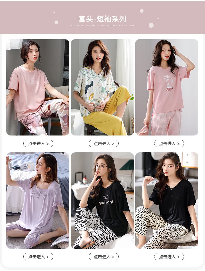 パジャマレディースサマーコットン半袖パンツホームサービス夏薄綿カジュアルスーツ外で着用可能 jial14892482287