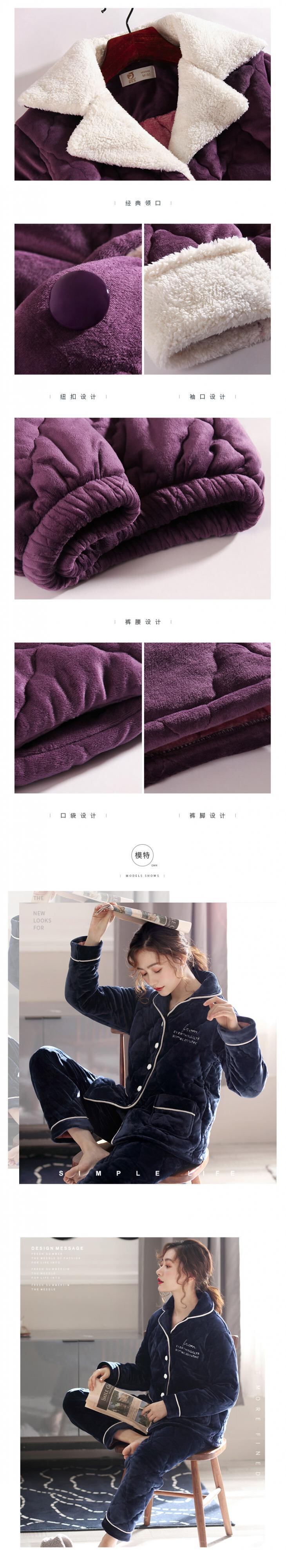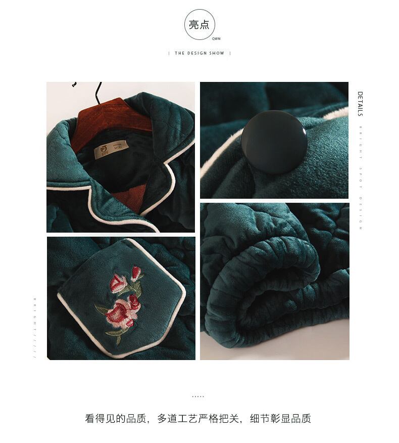 パジャマ女性の冬の3層の厚みとベルベットの暖かいキルティングジャケットフランネルコーラルフリース秋と冬の母親 jial454043531