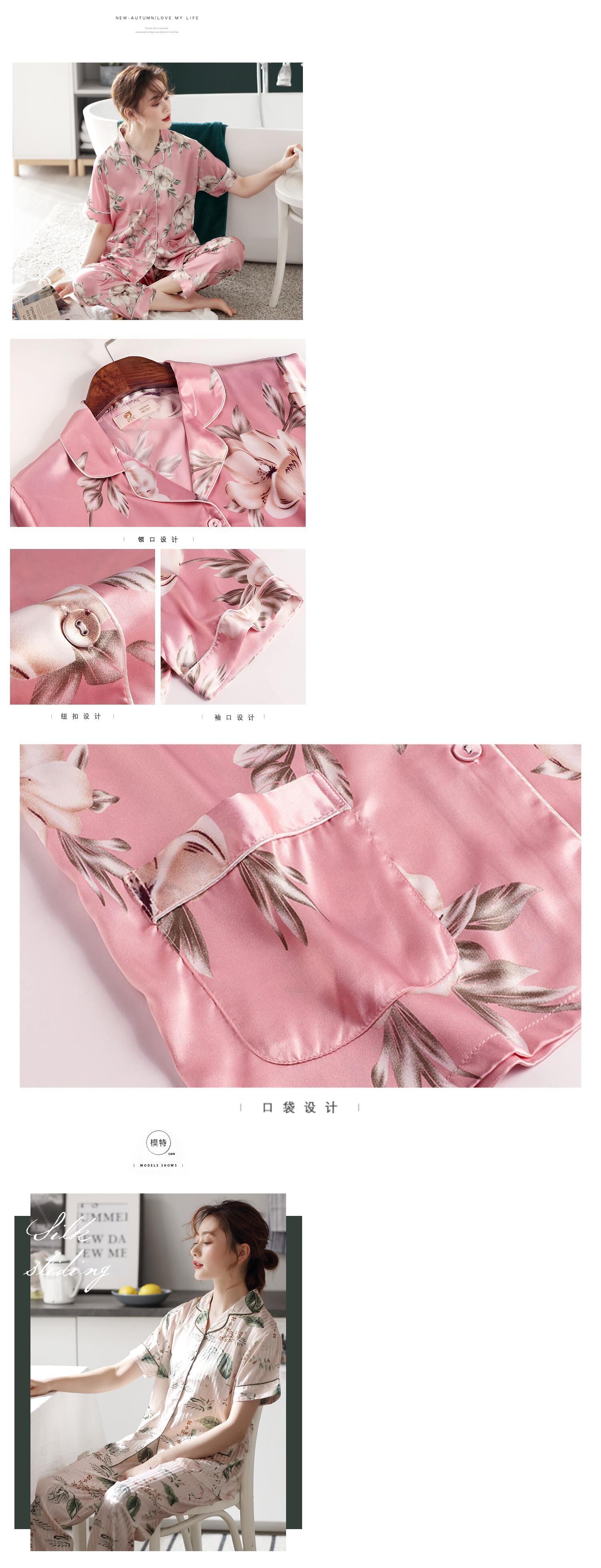 パジャマ女性夏アイスシルク半袖ホームサービス女性夏薄片シミュレーションシルクシルクサテンスーツ jial58067120853