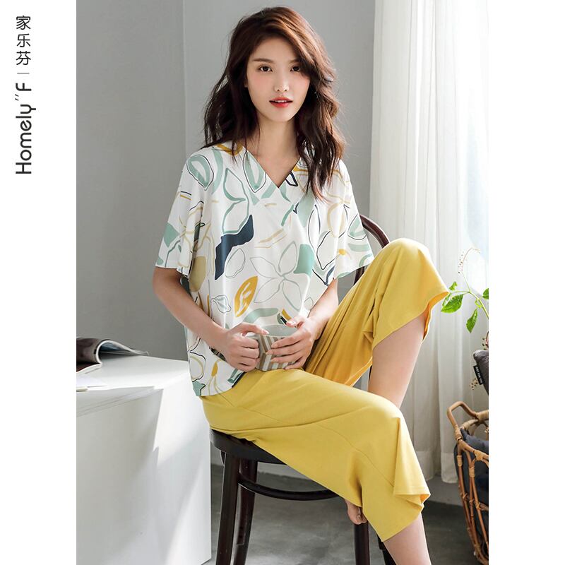 パジャマ女性夏モーダルコットンシルク半袖夏服薄着アイスシルクルーズラージサイズレジャー出かけることができます jial24959309897