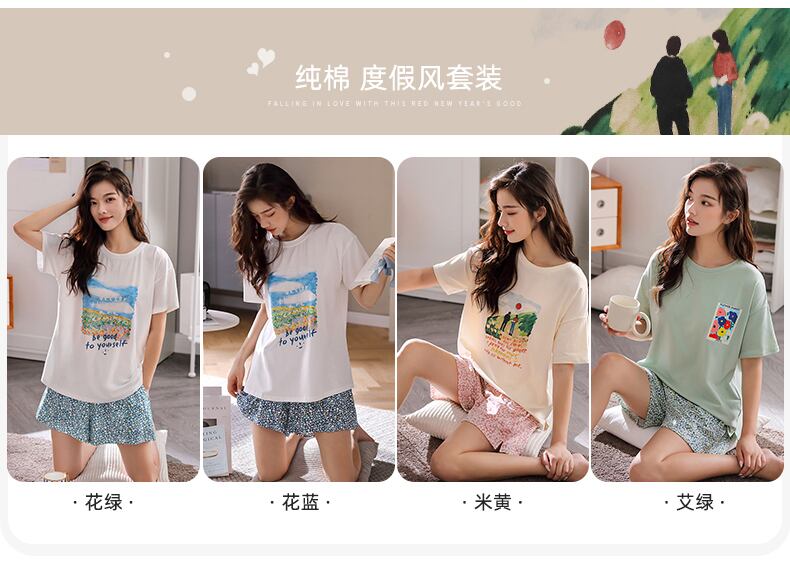 パジャマレディース夏綿半袖ショーツホームサービス夏薄綿カジュアルは大きいサイズのスーツを着ることができます jial91249021793