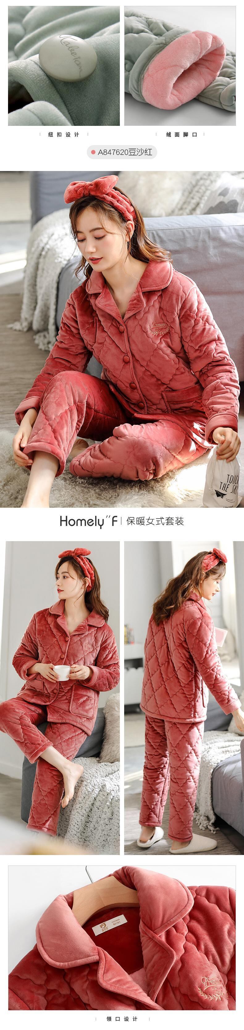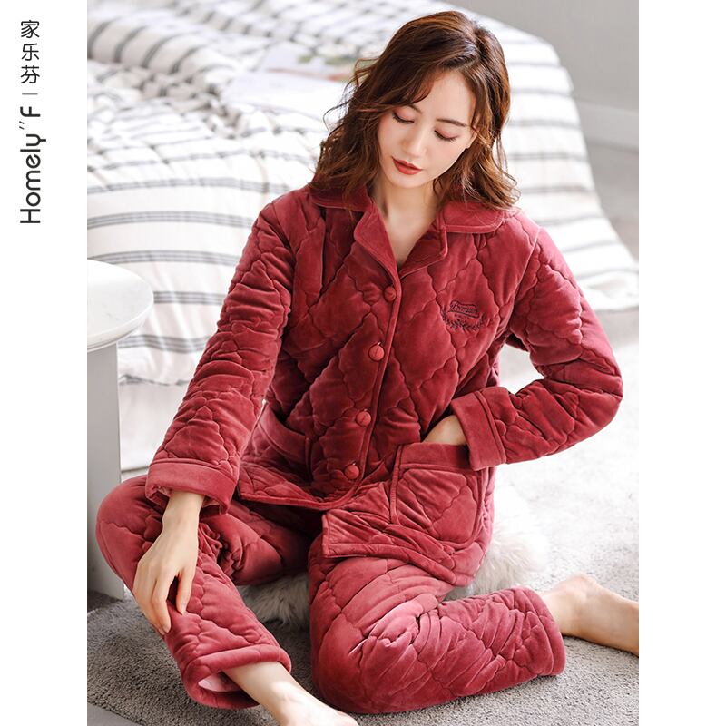 パジャマレディース冬秋冬モデル冬3層厚めキルティングコーラルフリースプラスフランネルウォームホームサービス jial62121937715