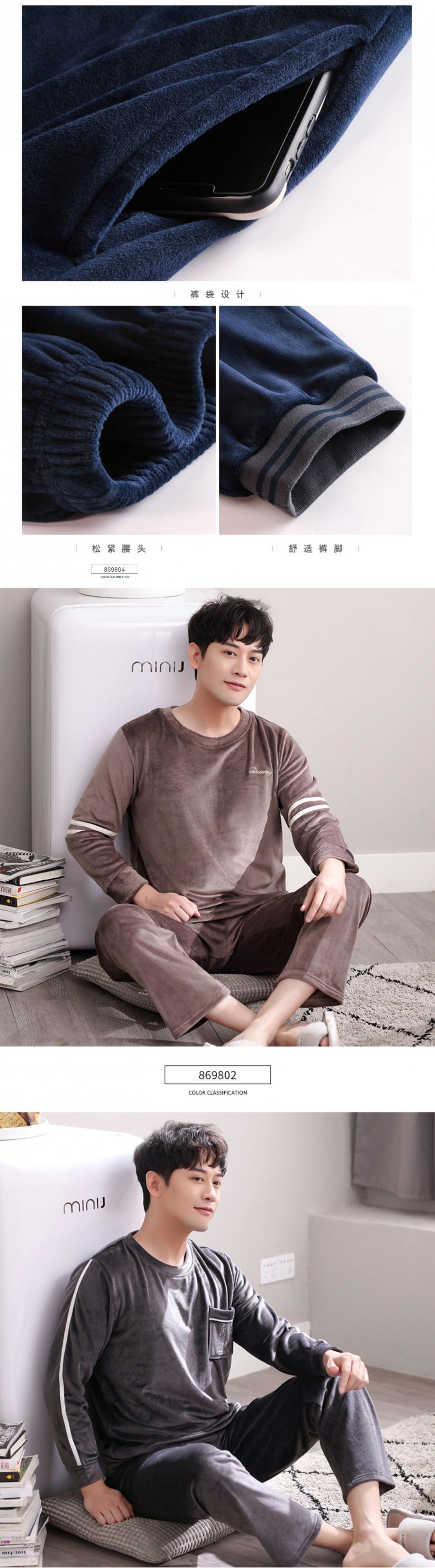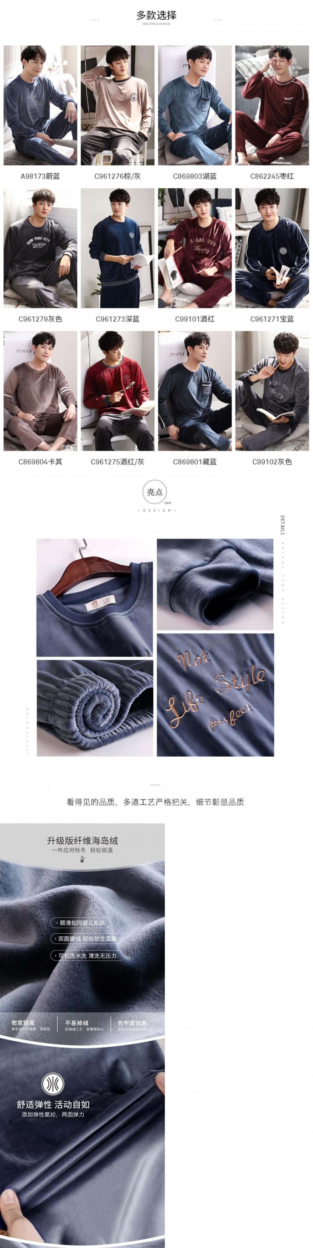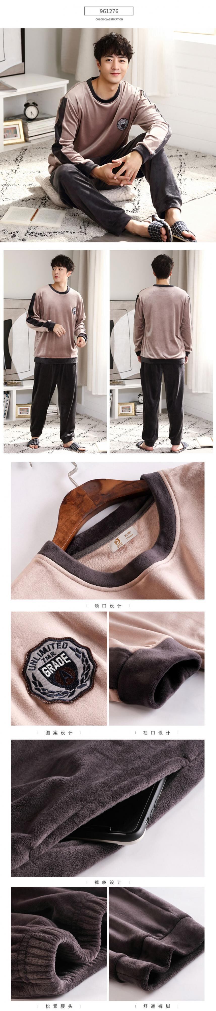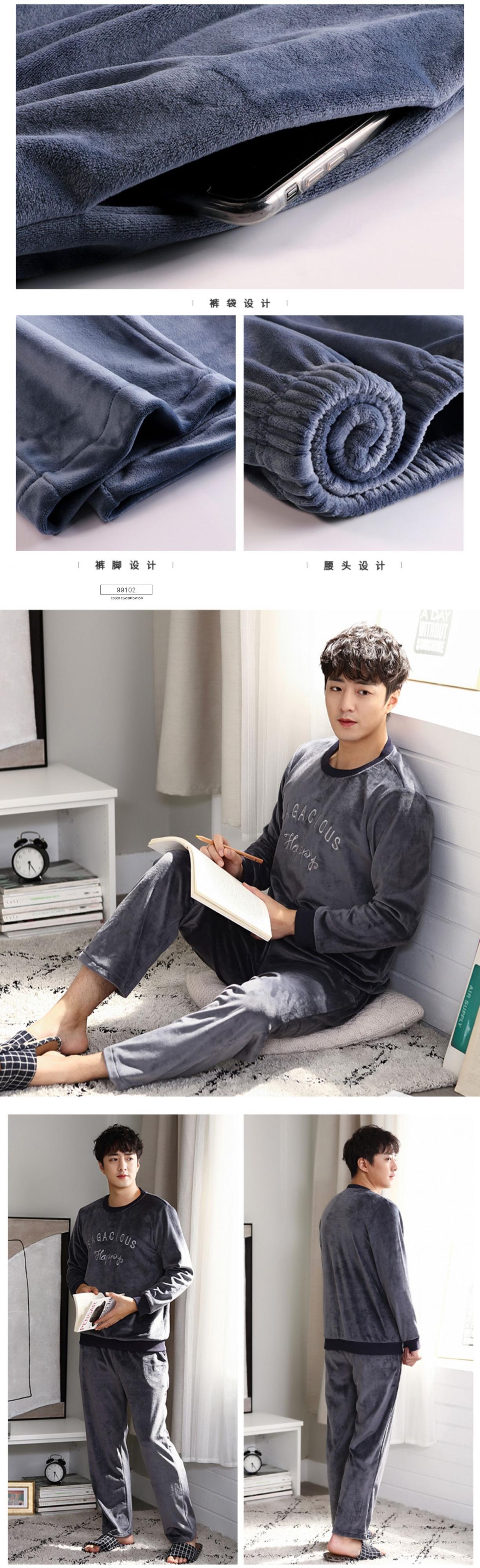 パジャマメンズアイランドフリース長袖春秋ホームサービス秋冬モデル冬プラスベルベット厚手のコーラルフリースフランネル jial90455095760