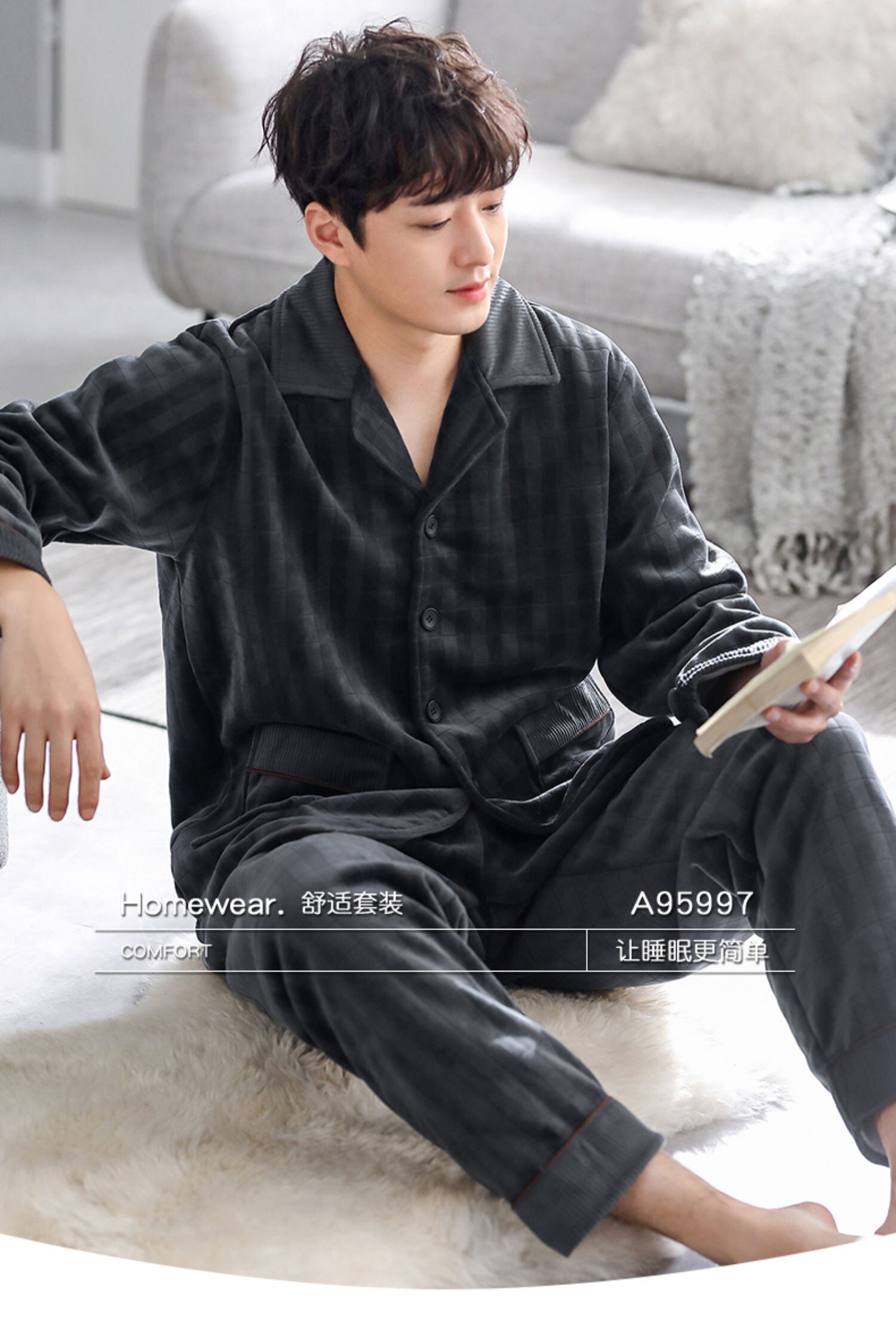 冬のコーラルフリース複合キルティング増粘とベルベットの暖かいフランネルホームサービス冬のパジャマメンズ秋と冬のモデル jial61164919354