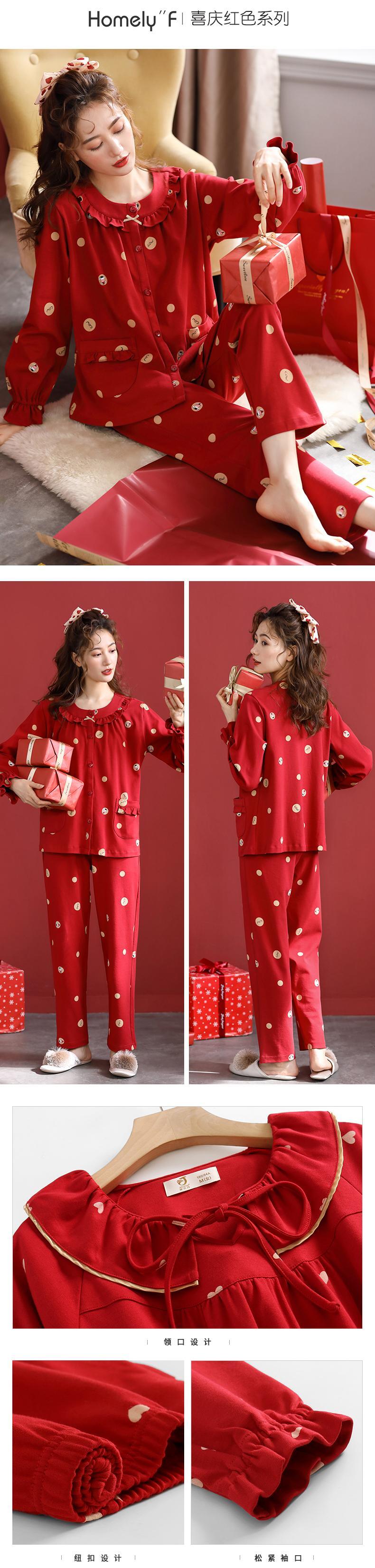 純綿長袖家庭服のスタイルパジャマ女性の春と秋のモデル綿100% jial88904381468