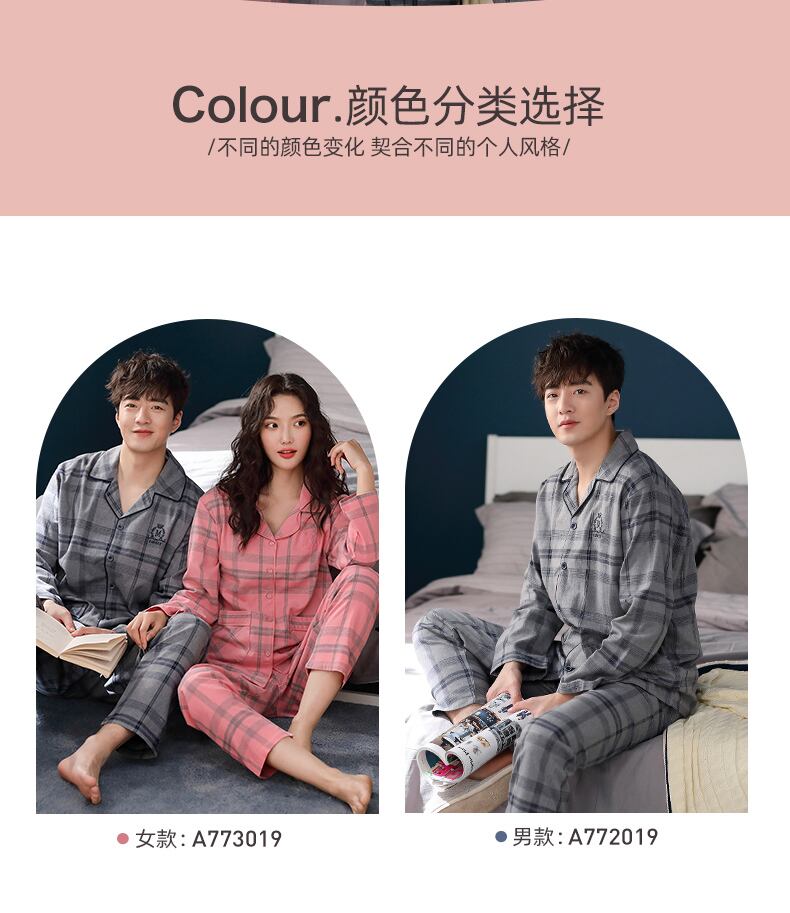 カップルパジャマメンズ春秋コットン長袖ホームサービスレディースコットンガーゼ春夏薄スーツ jial11224530136
