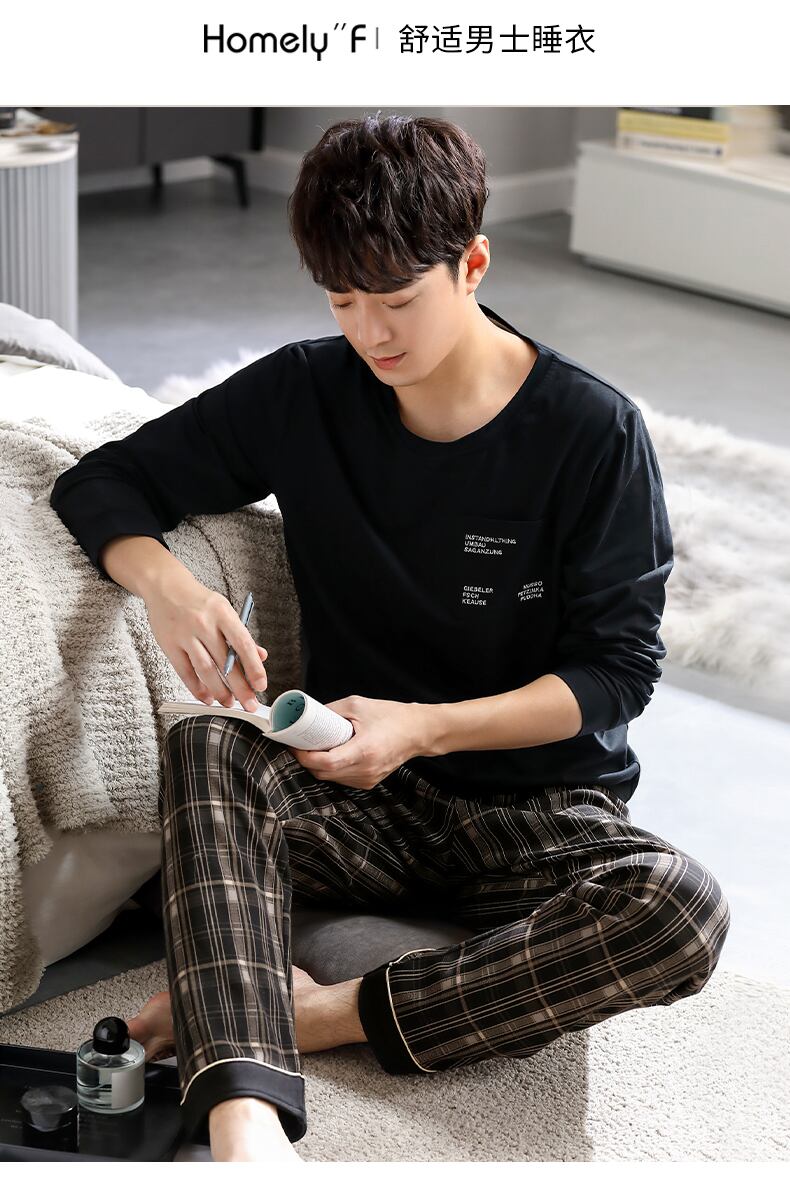 2021年新作パジャマメンズ春秋モデル秋コットン長袖ホームサービスメンズコットン四季スーツ jial41097632463