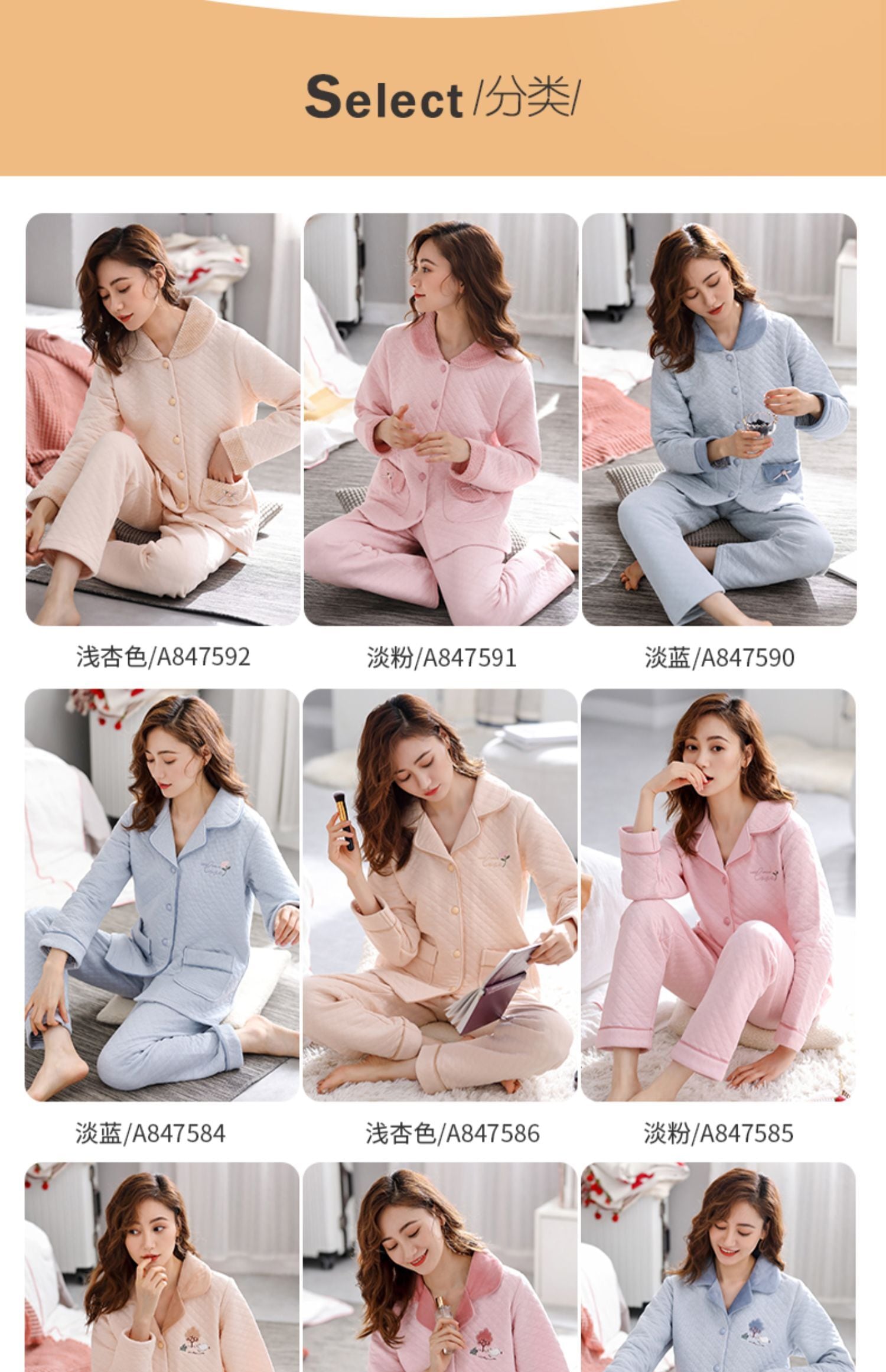 パジャマレディース春秋秋秋厚め純綿ホームサービスエアコットン中間層薄キルティング秋冬スーツ jial72155647159