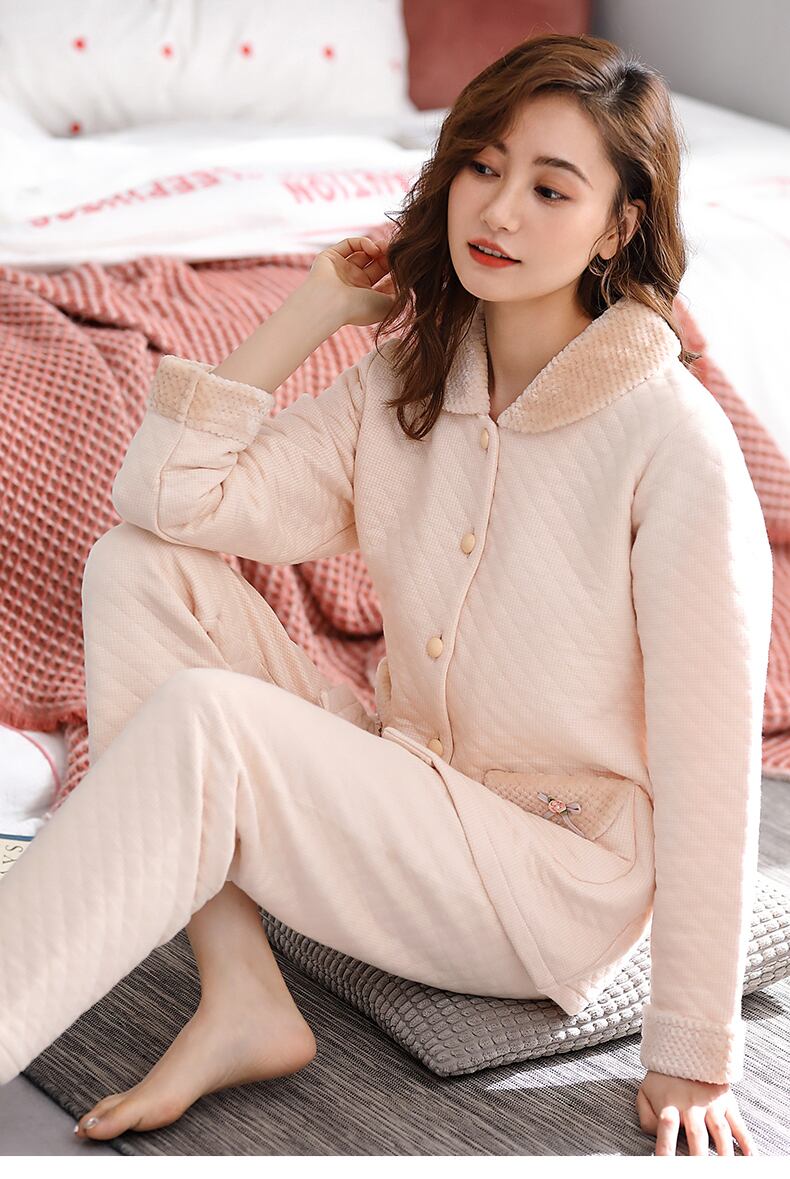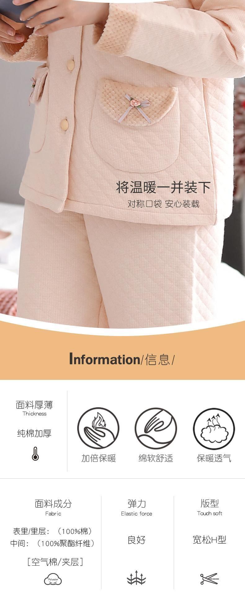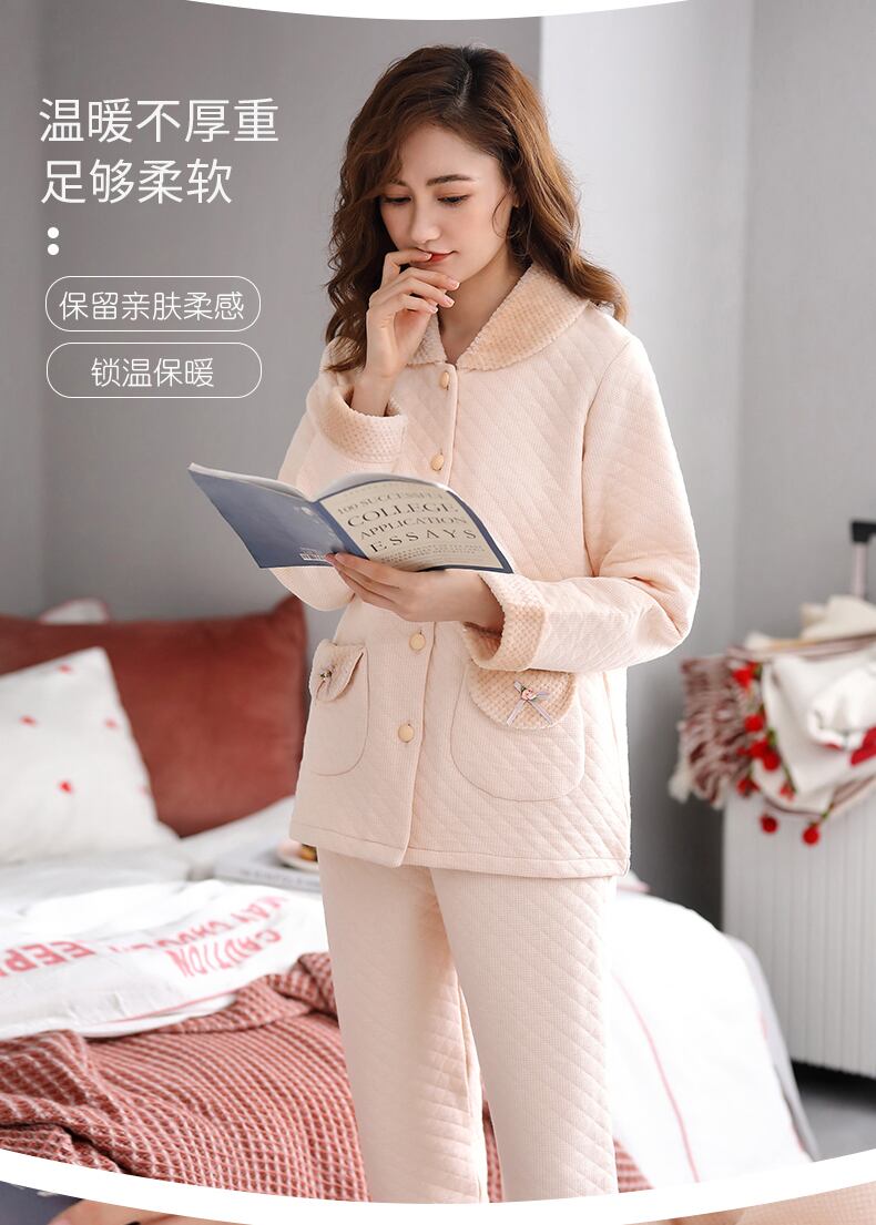 パジャマレディース春秋秋秋厚め純綿ホームサービスエアコットン中間層薄キルティング秋冬スーツ jial94917397504