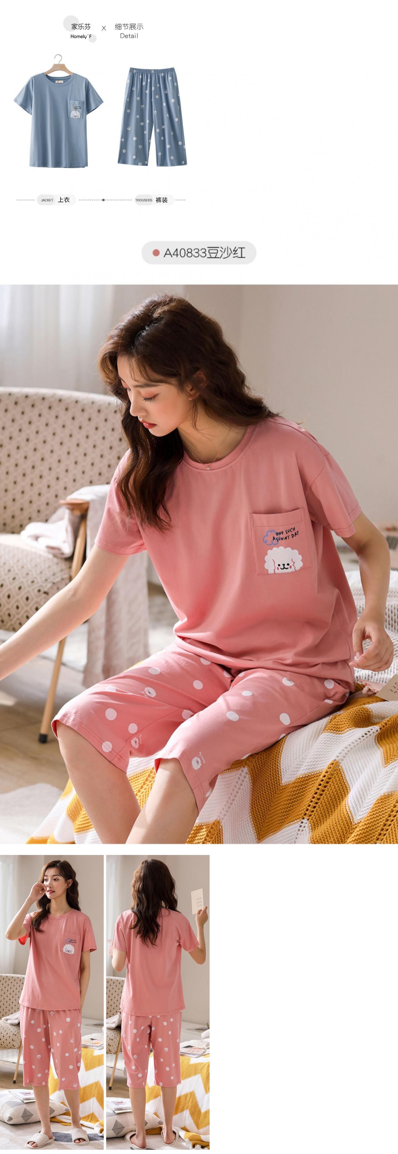 2021年新作パジャマレディースサマーコットン半袖クロップドパンツホームサービスサマーシンコットンスーツ jial87525213263