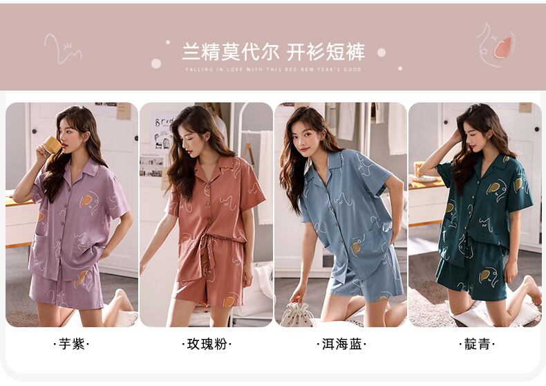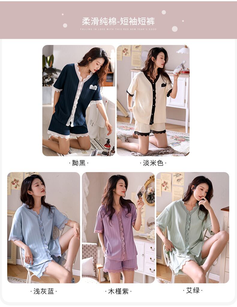 パジャマレディースサマーコットン半袖ショーツホームサービスサマーシンイーズキュートスウィートプリンセスカーディガン jial97670777319