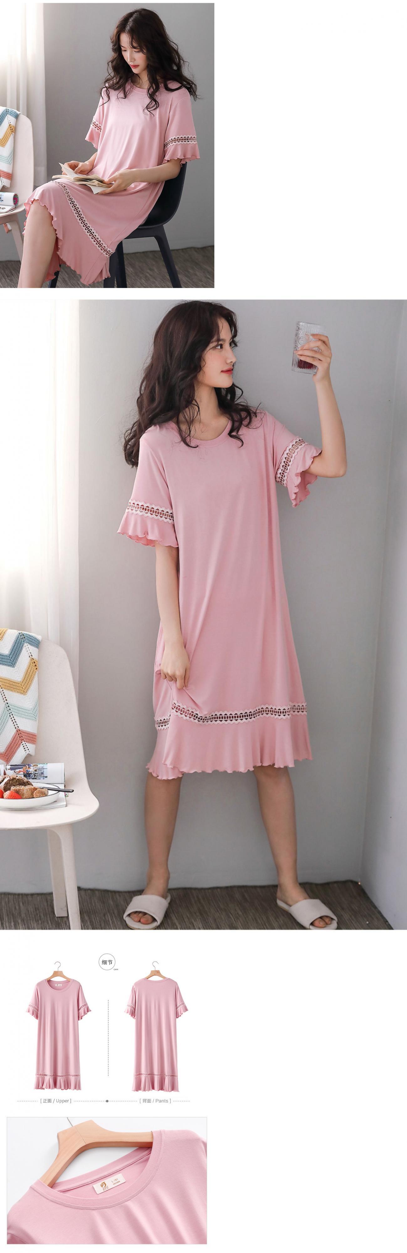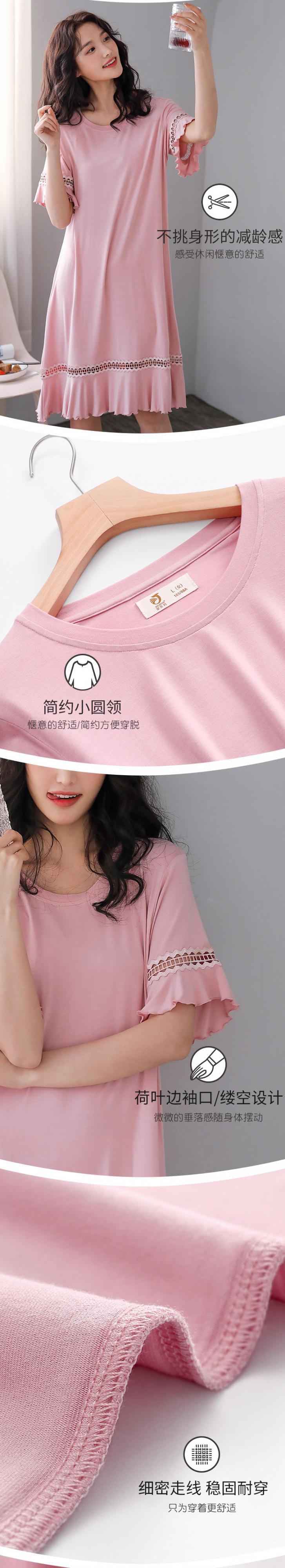 ナイトスカートレディースパジャマ夏夏半袖薄モーダルコットンシルクホームサービスミディアムロングルーズプラスサイズ jial10177382642