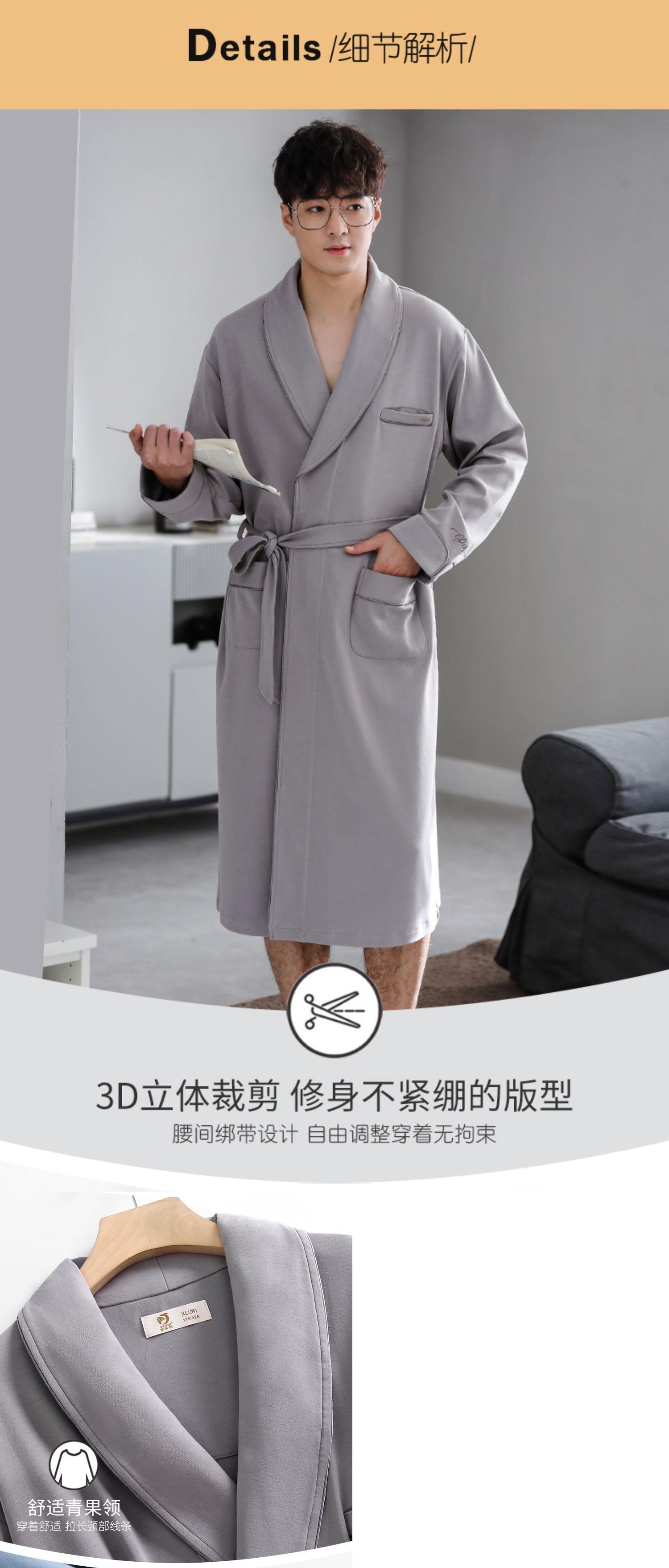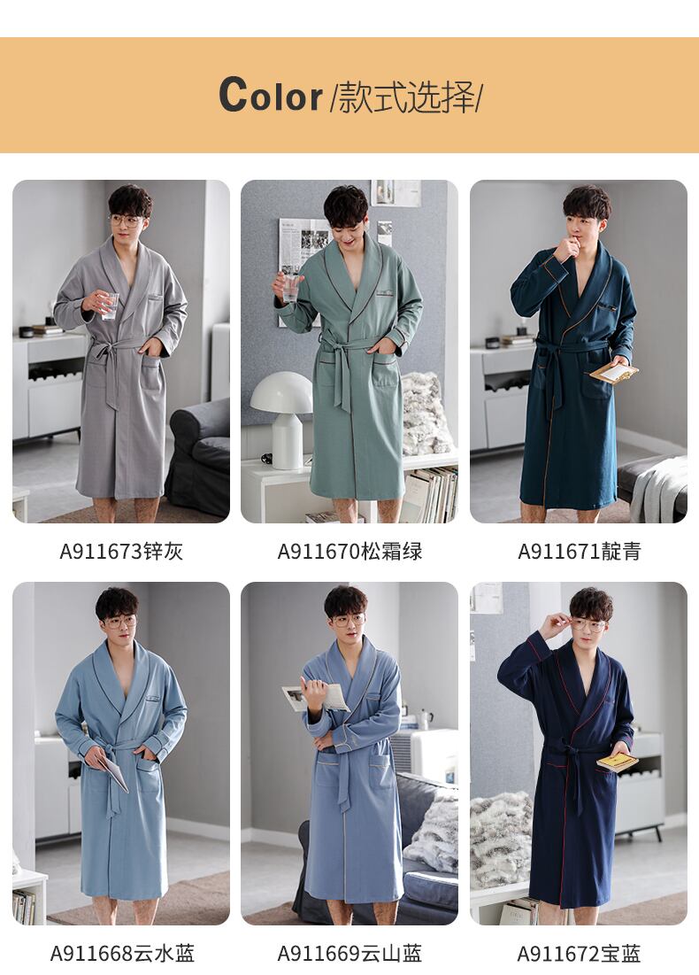 ネグリジェメンズパジャマ、メンズバスローブ、春と秋のモデル、秋の綿の長袖の家庭服、綿の長い、薄い、大きいサイズ jial51887820033